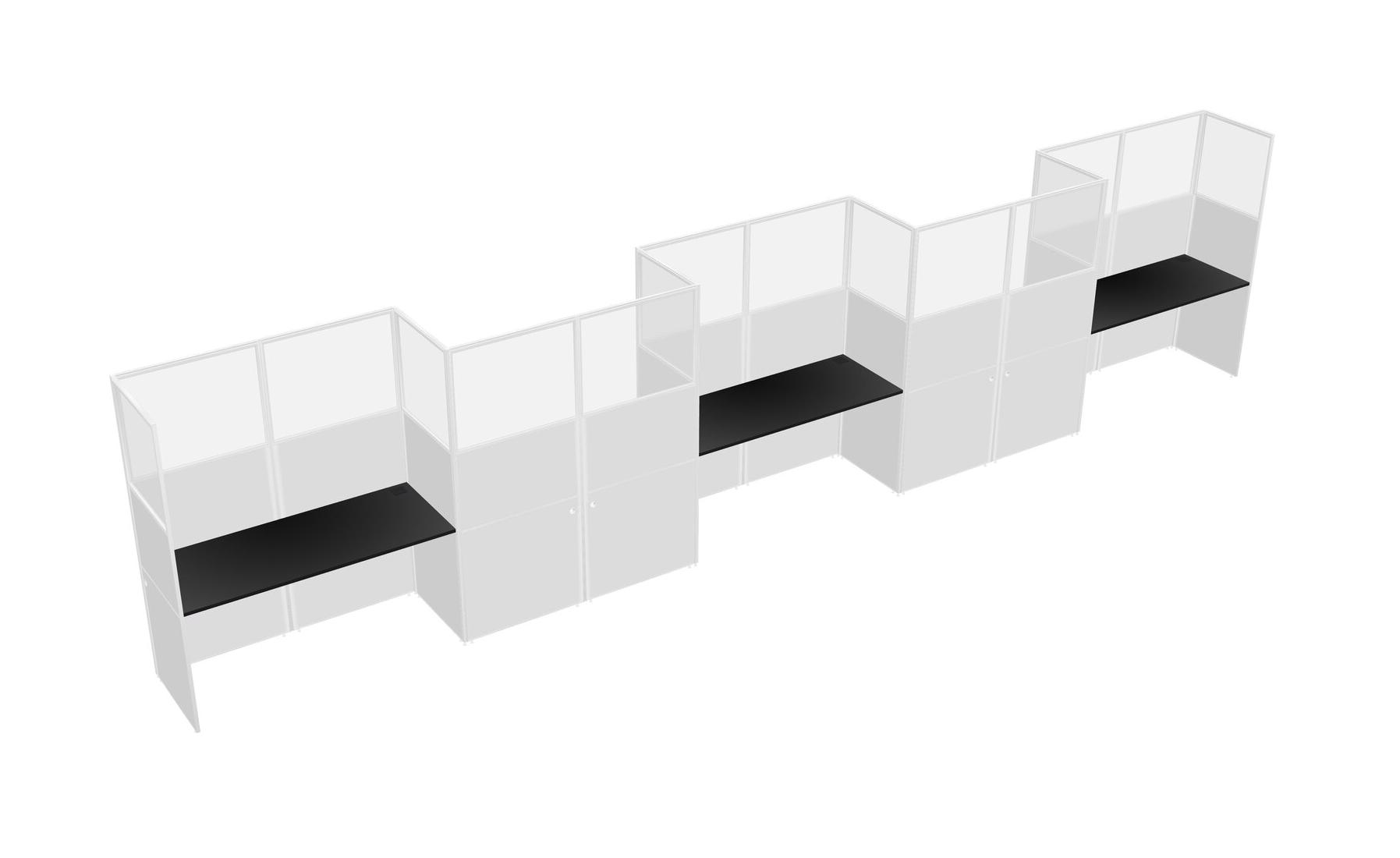 Black Rectangular Cubicle Workstations For 5 - Zigzag Formation