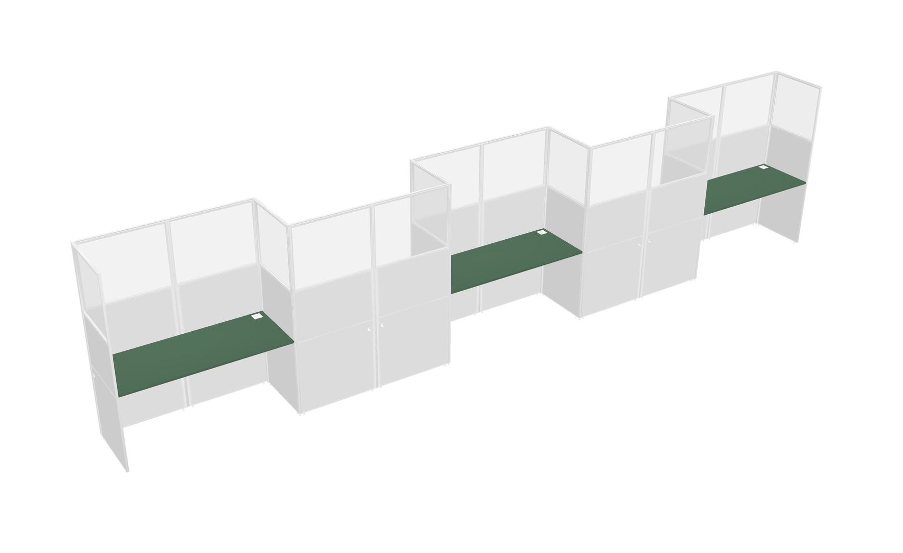 Green Rectangular Cubicle Workstations For 5 - Zigzag Formation