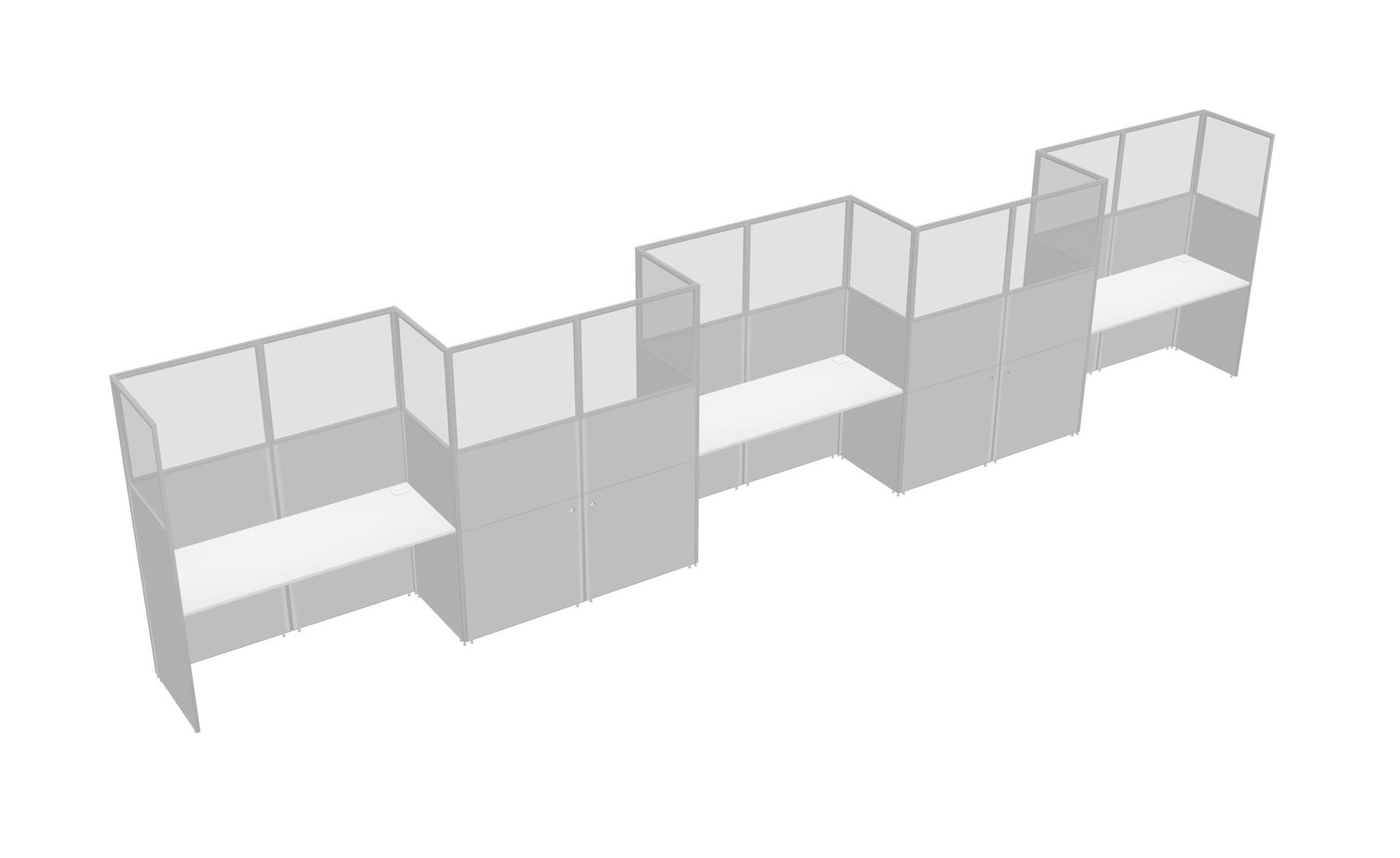 White Rectangular Cubicle Workstations For 5 - Zigzag Formation
