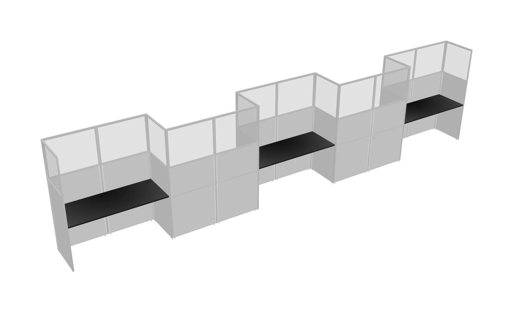Black Rectangular Cubicle Workstations For 5 - Zigzag Formation