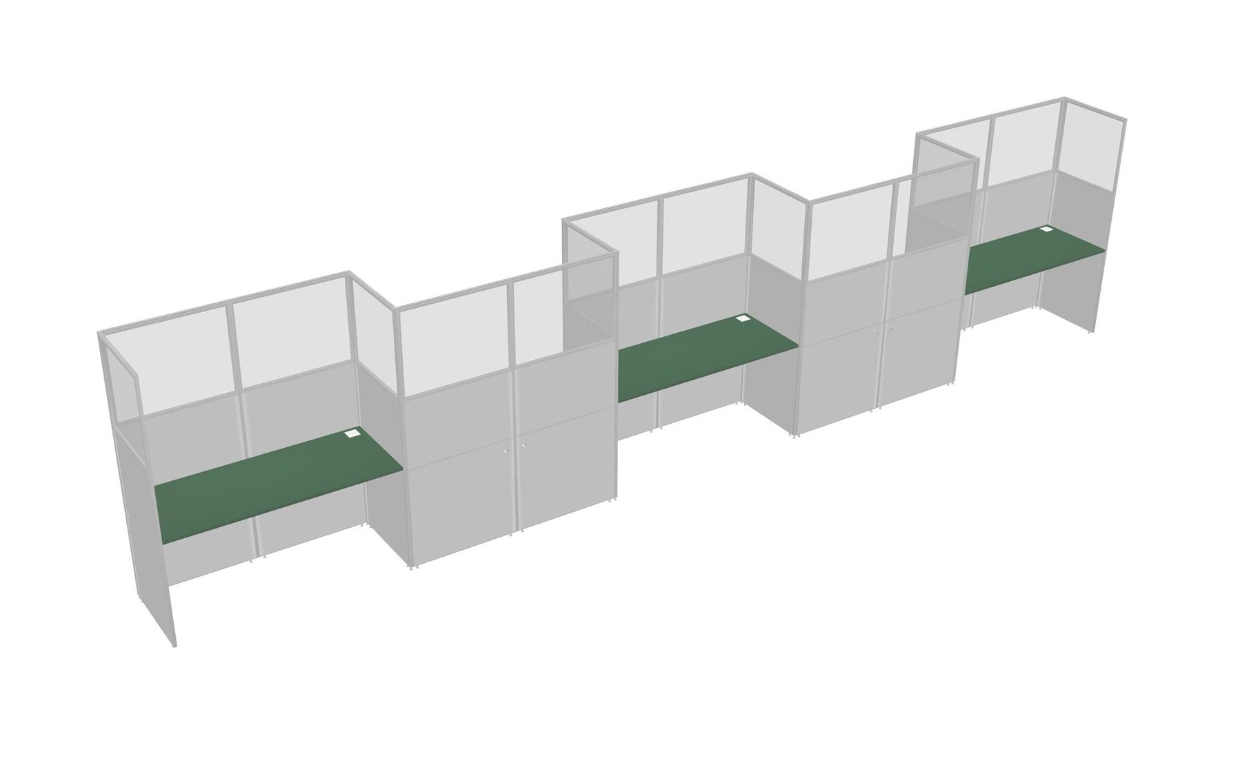 Green Rectangular Cubicle Workstations For 5 - Zigzag Formation