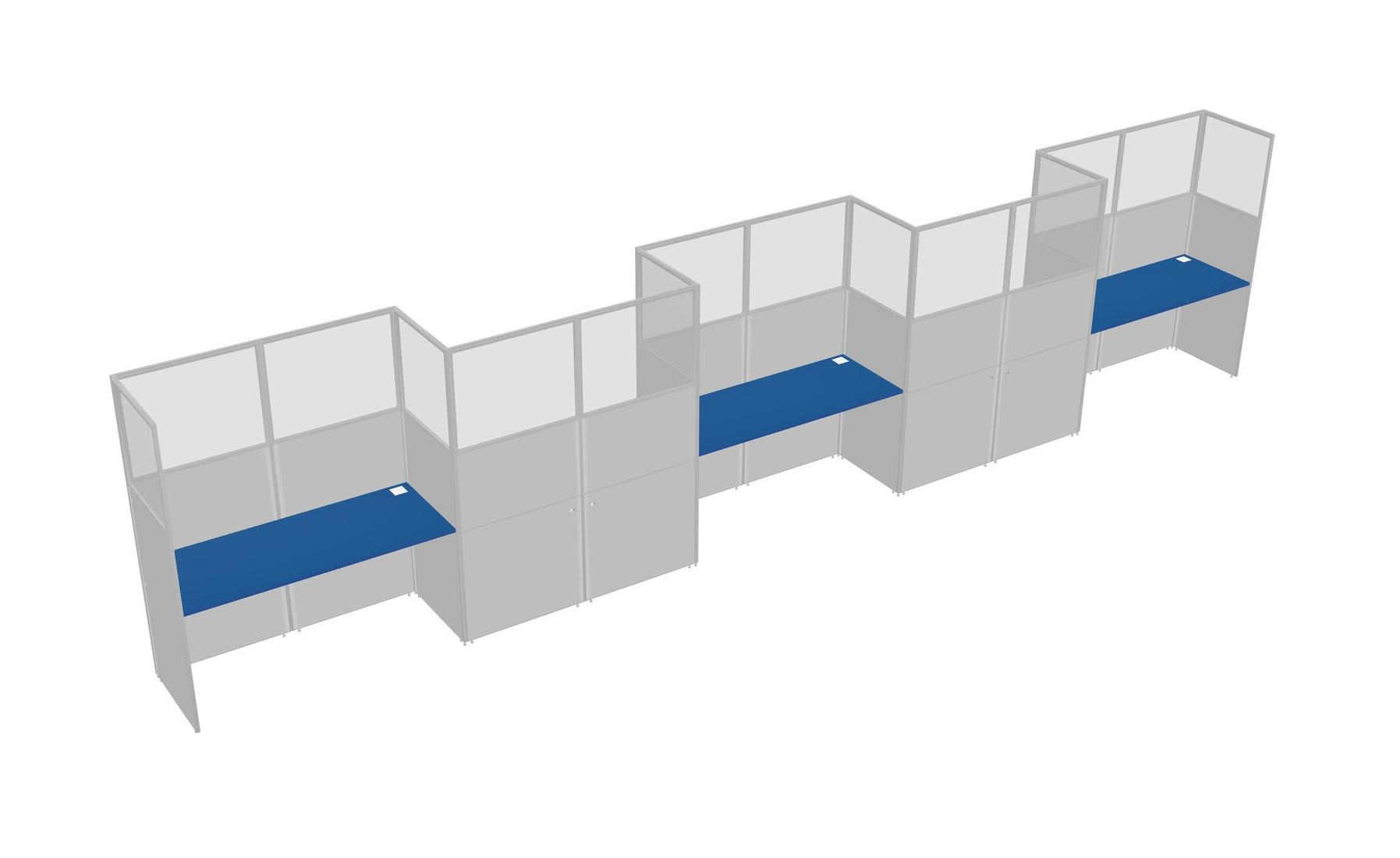 Prism Blue Rectangular Cubicle Workstations For 5 - Zigzag Formation