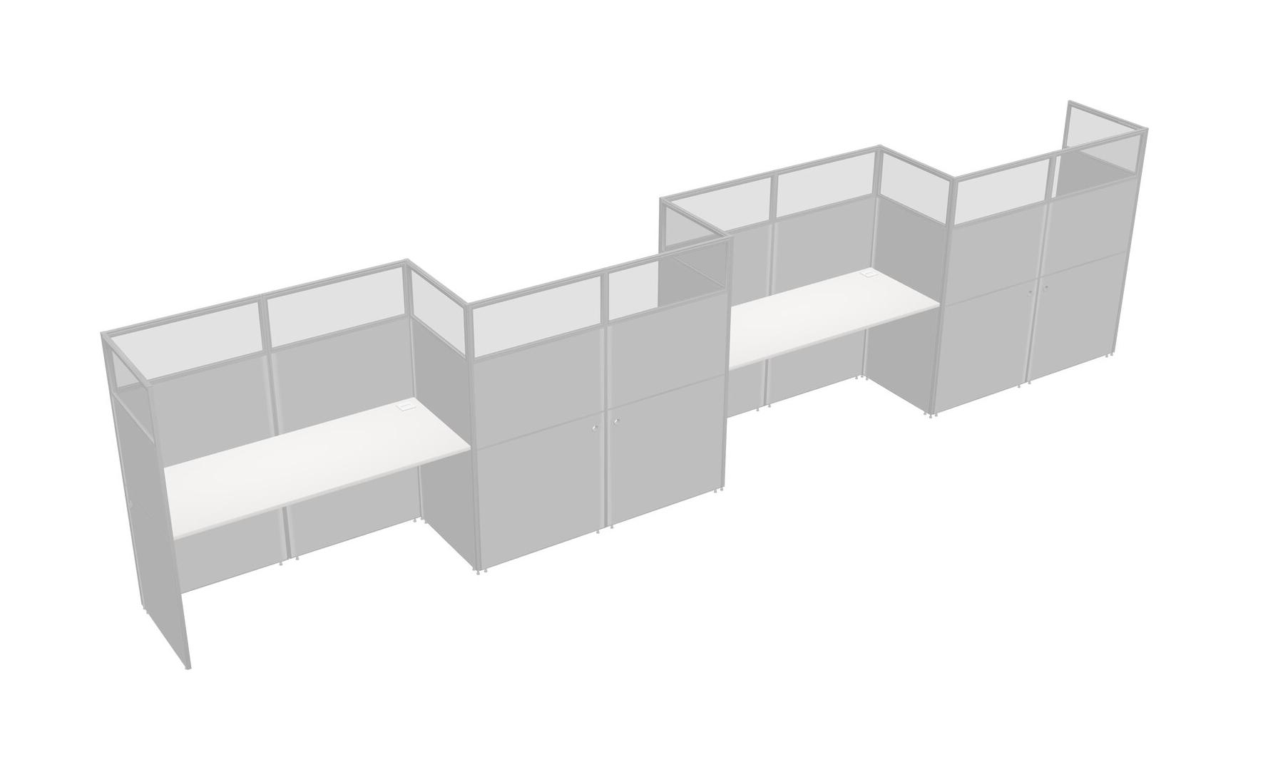White Rectangular Cubicle Workstations For 4 - Zigzag Formation