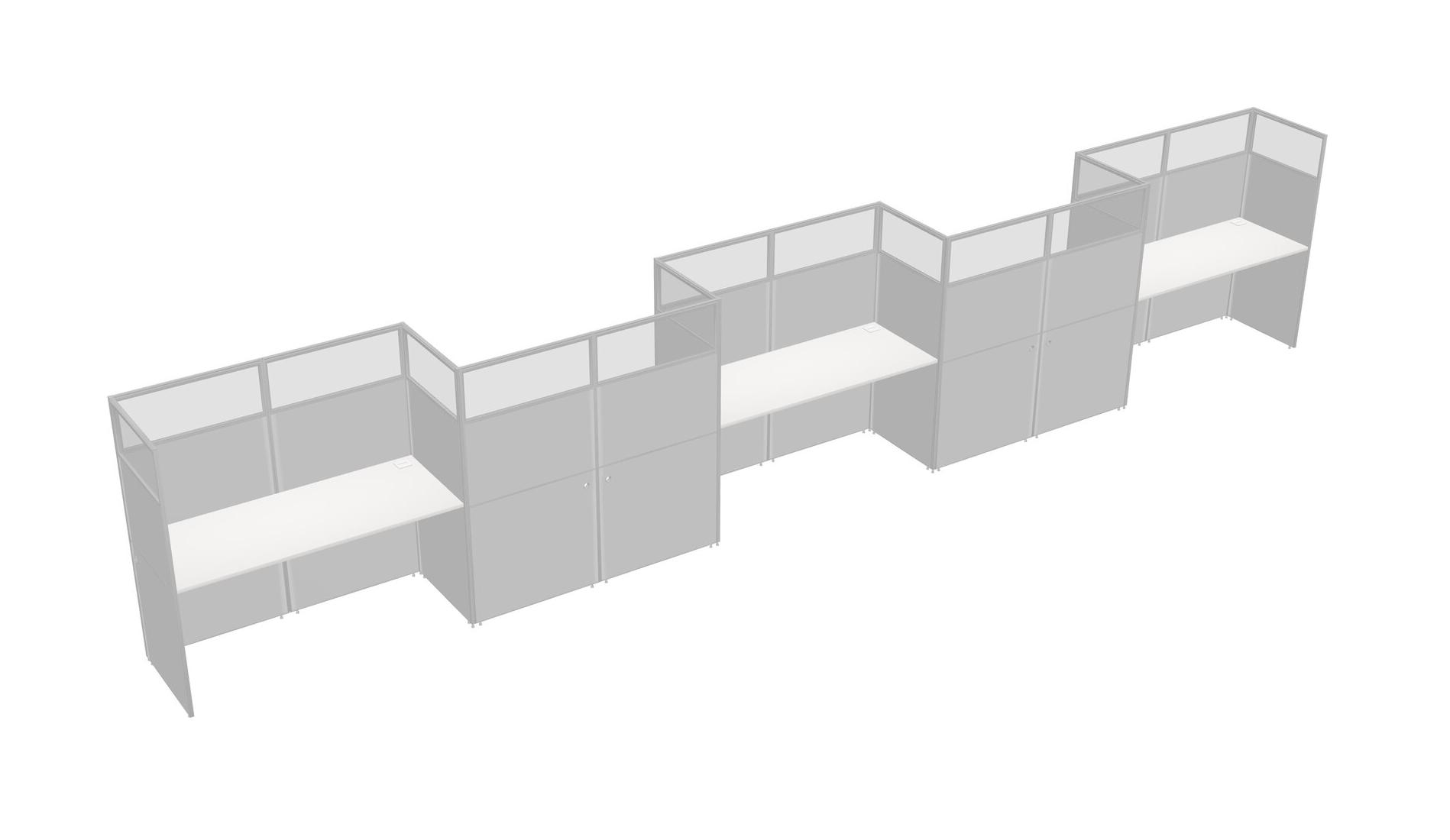 White Rectangular Cubicle Workstations For 5 - Zigzag Formation