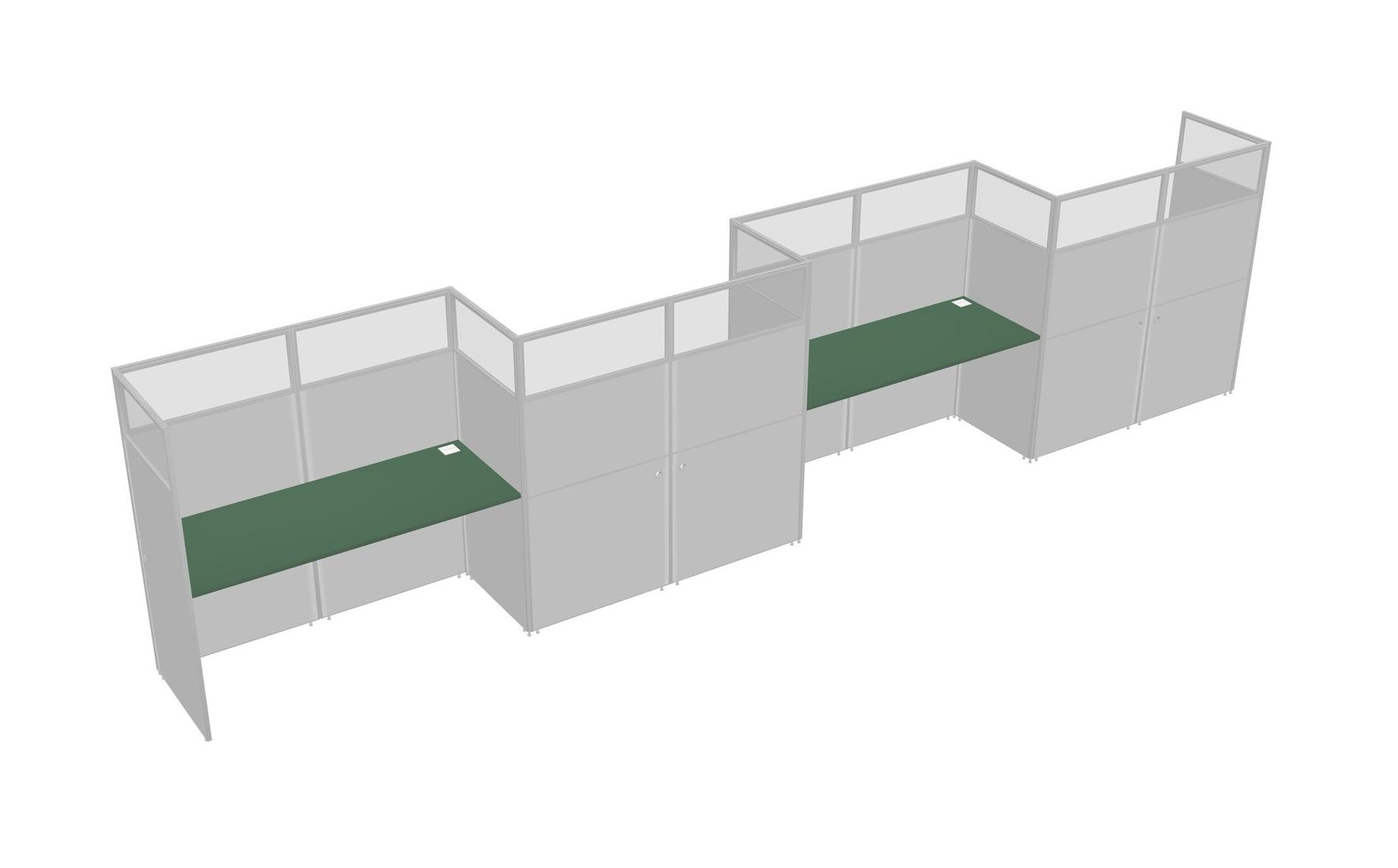 Green Rectangular Cubicle Workstations For 4 - Zigzag Formation