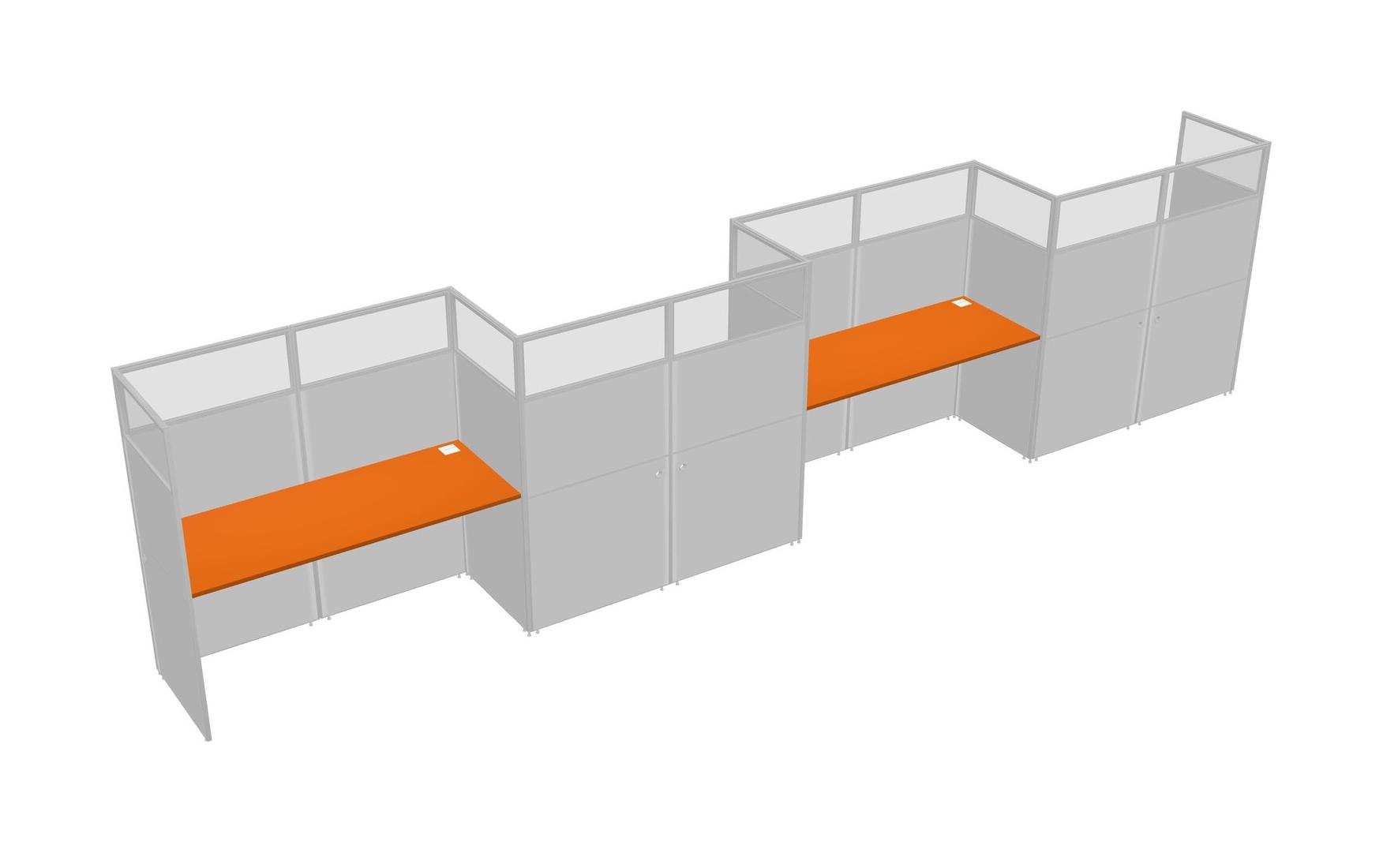 Orange Rectangular Cubicle Workstations For 4 - Zigzag Formation