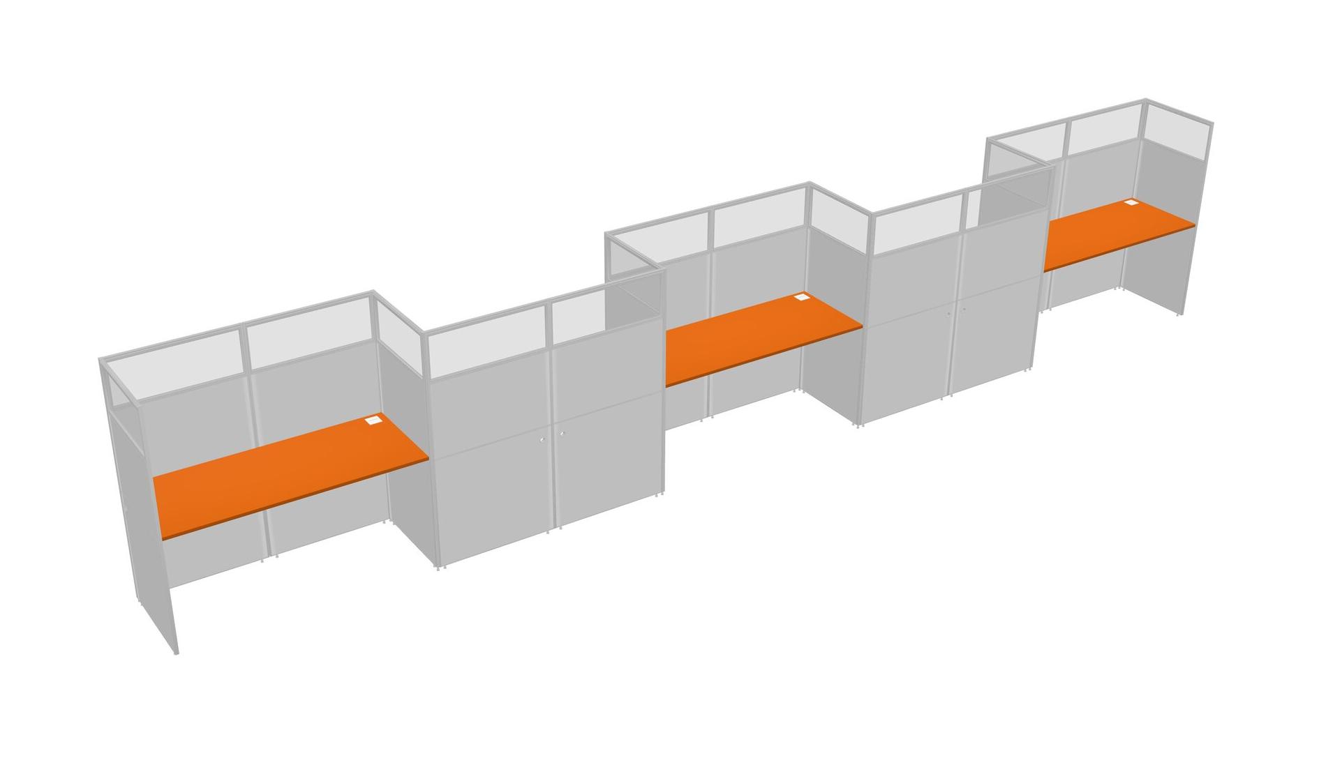 Orange Rectangular Cubicle Workstations For 5 - Zigzag Formation