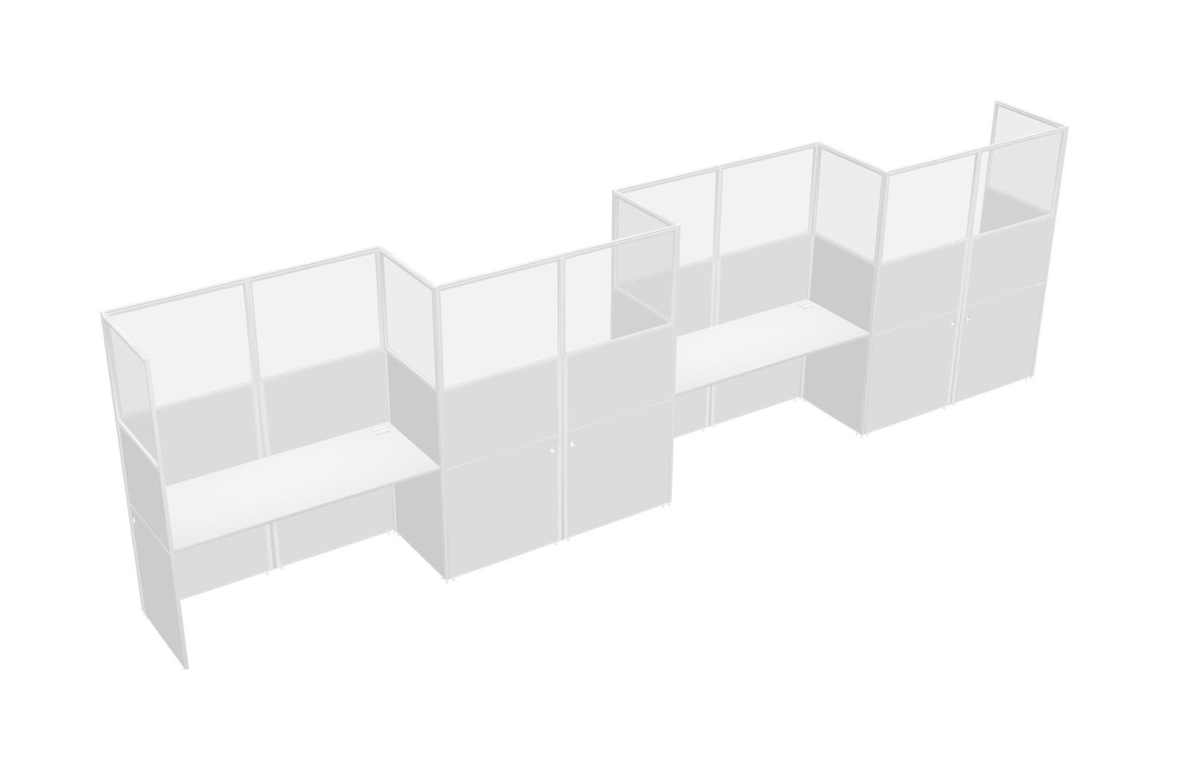 White Rectangular Cubicle Workstations For 4 - Zigzag Formation