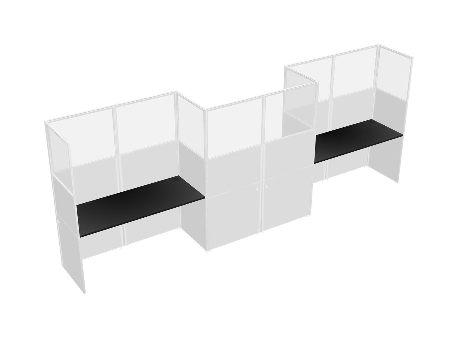Black Rectangular Cubicle Workstations For 3 - Zigzag Formation