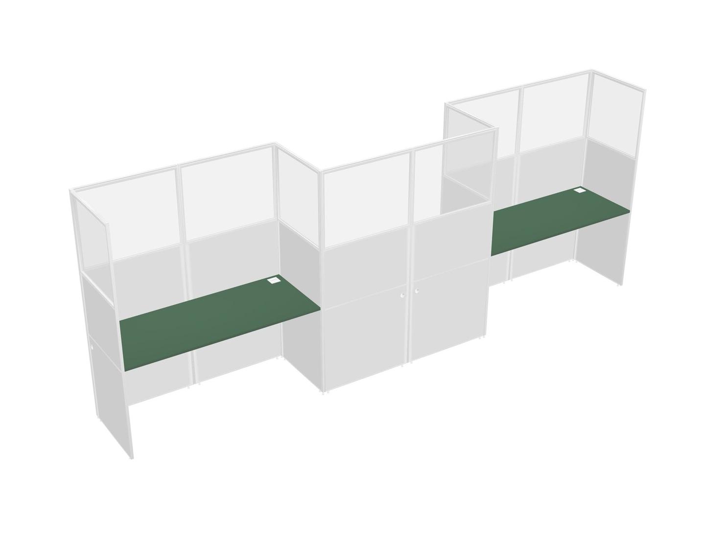 Green Rectangular Cubicle Workstations For 3 - Zigzag Formation