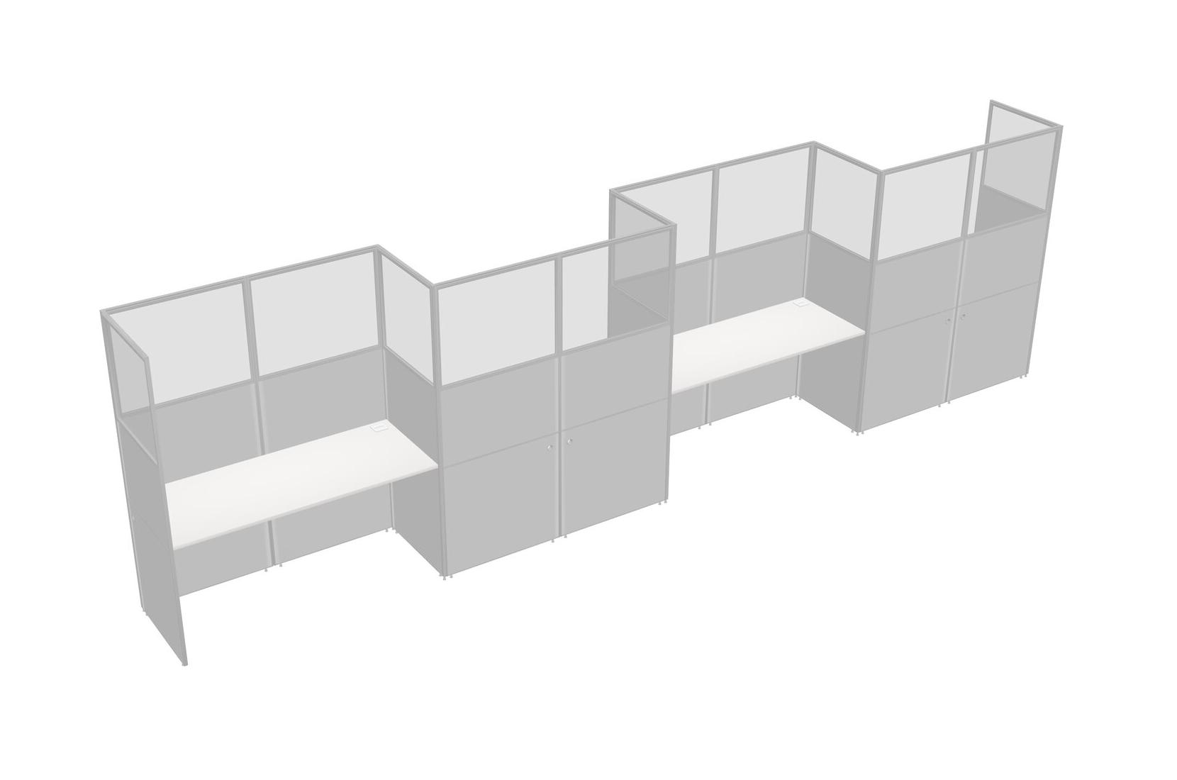 White Rectangular Cubicle Workstations For 4 - Zigzag Formation
