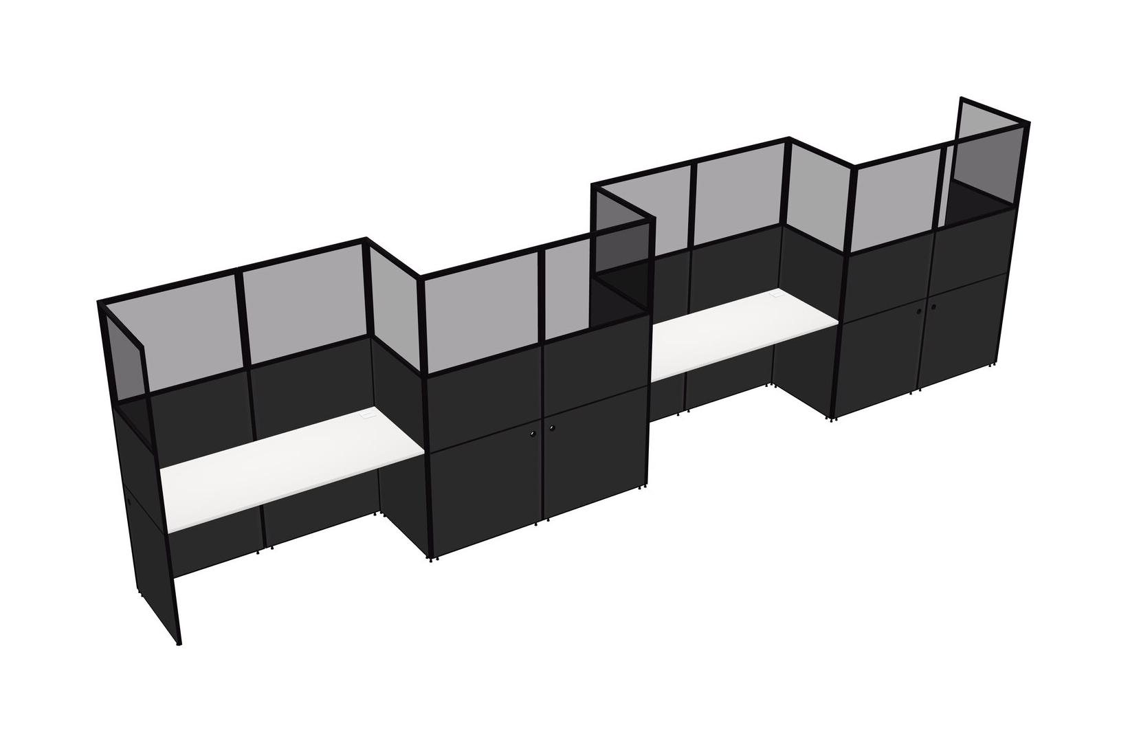 White Rectangular Cubicle Workstations For 4 - Zigzag Formation