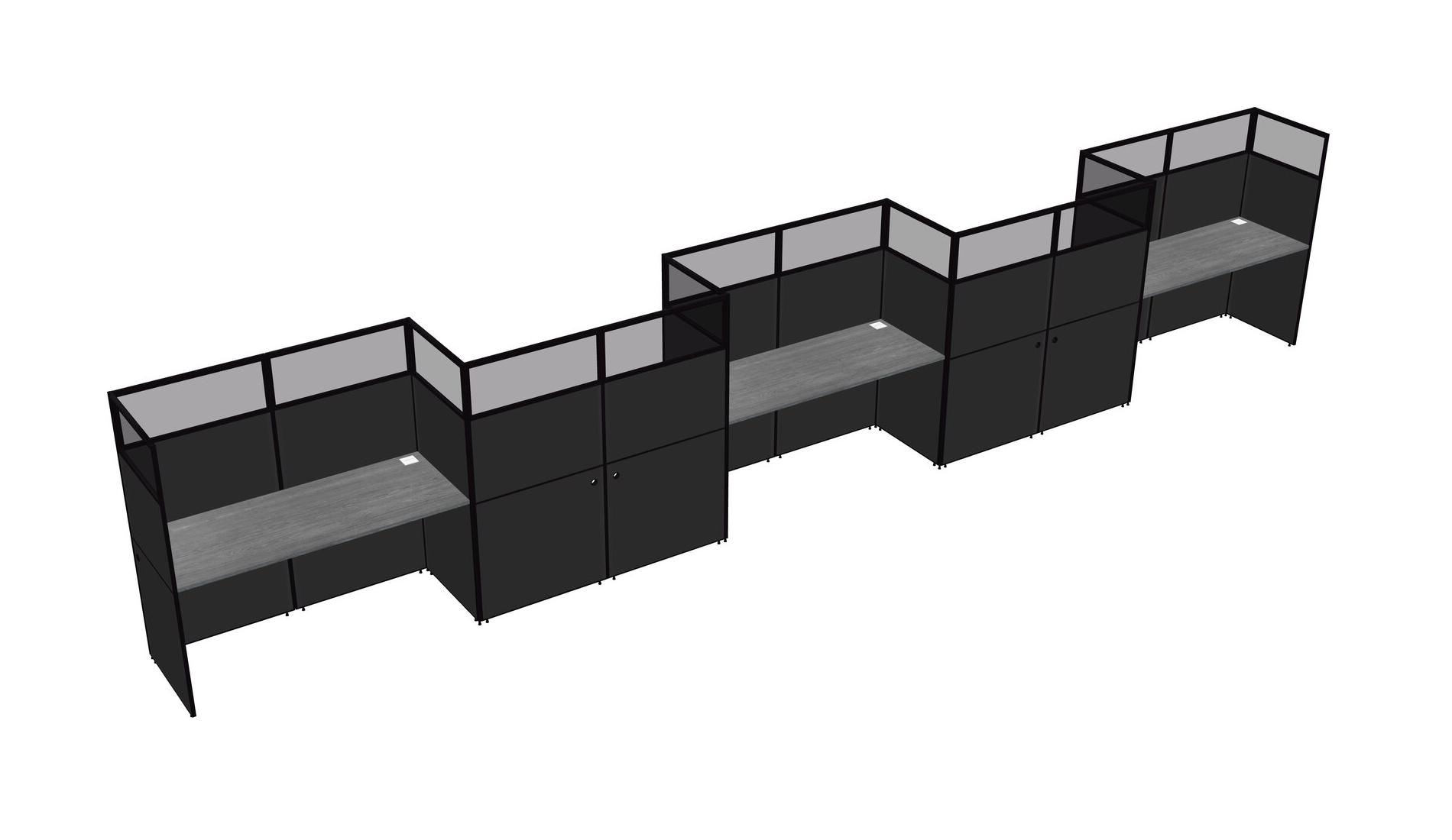 Grey Rectangular Cubicle Workstations For 5 - Zigzag Formation
