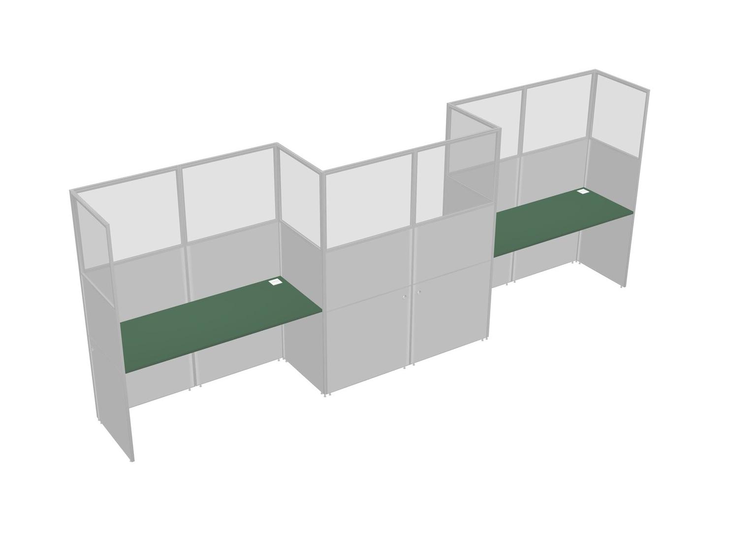 Green Rectangular Cubicle Workstations For 3 - Zigzag Formation