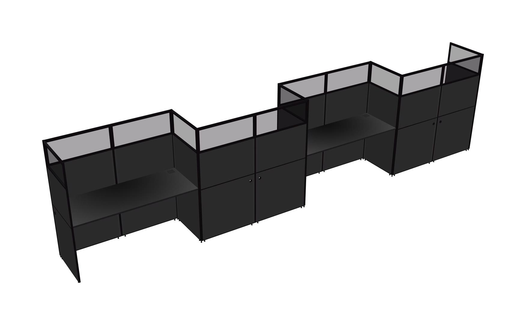 Black Rectangular Cubicle Workstations For 4 - Zigzag Formation