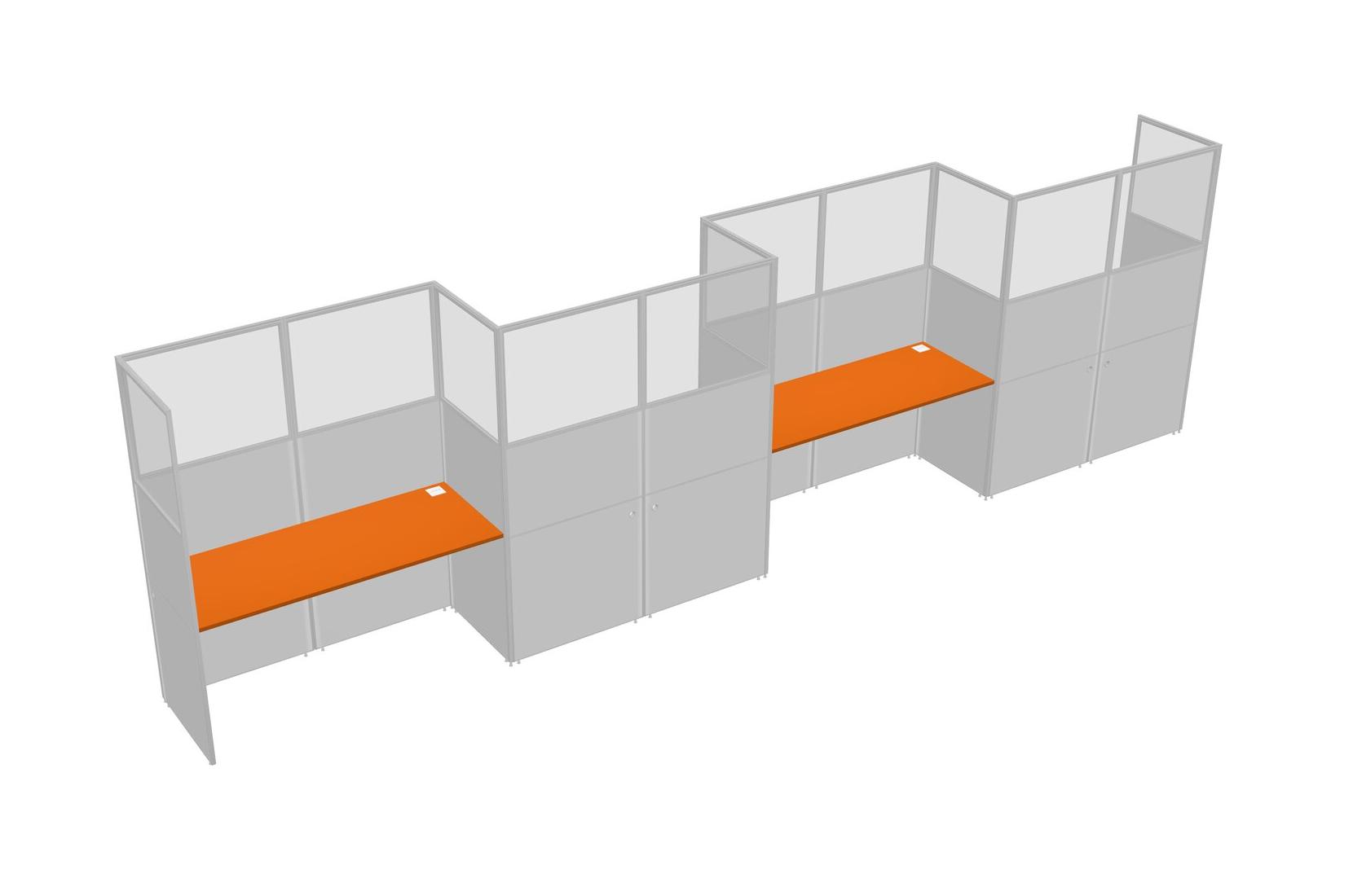 Orange Rectangular Cubicle Workstations For 4 - Zigzag Formation