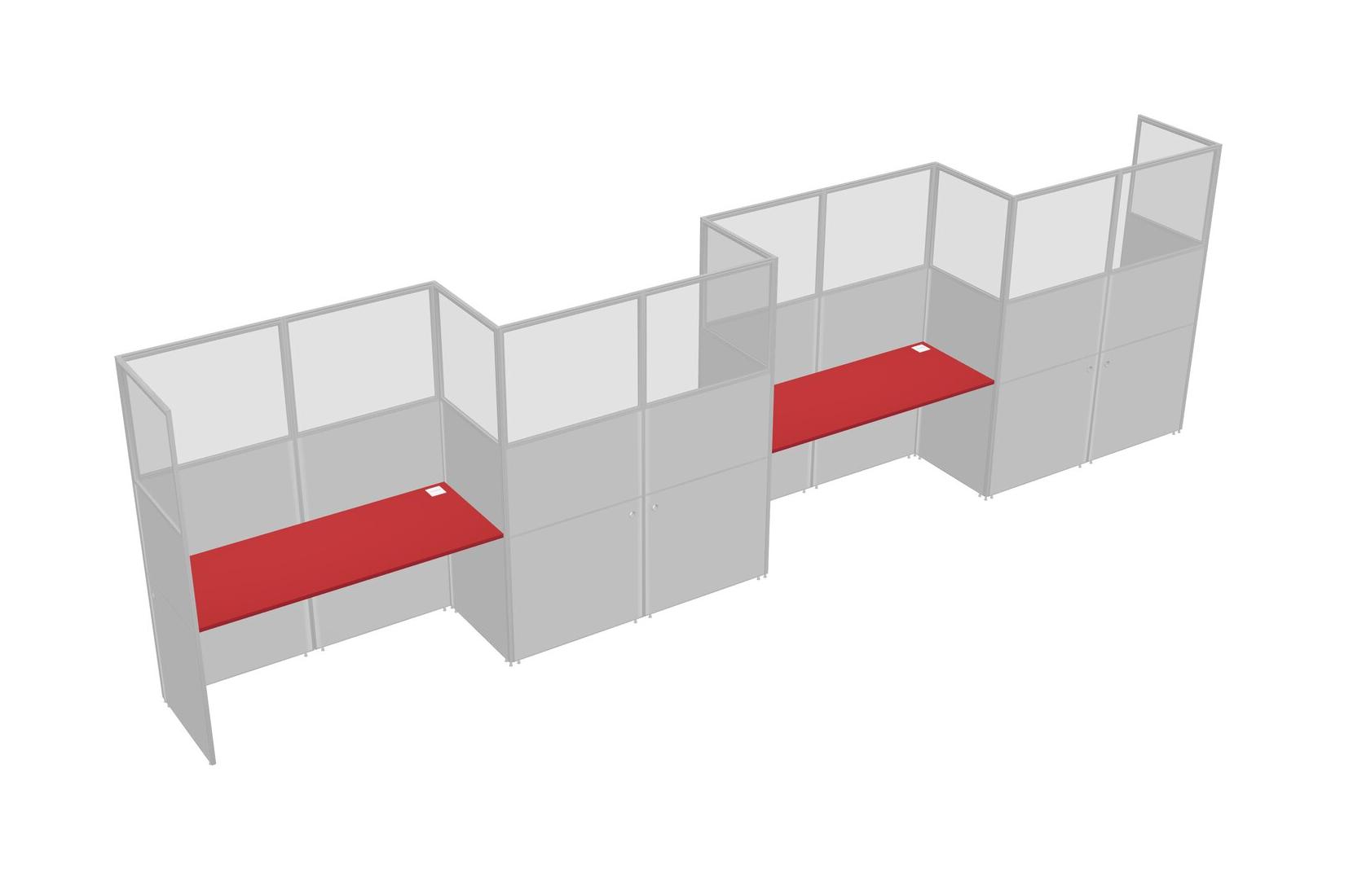 Prism Red Rectangular Cubicle Workstations For 4 - Zigzag Formation
