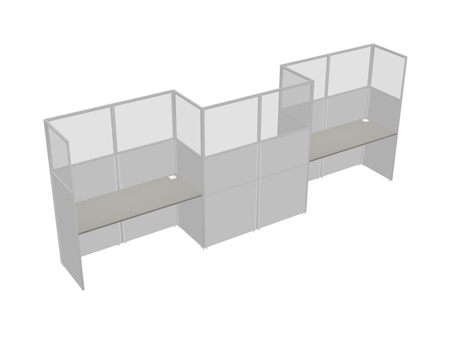 Grey Shadows Rectangular Cubicle Workstations For 3 - Zigzag Formation