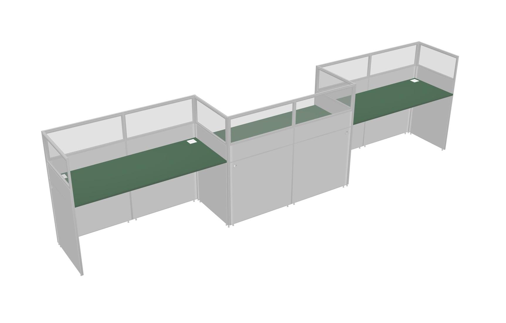 Green Rectangular Cubicle Workstations For 3 - Zigzag Formation