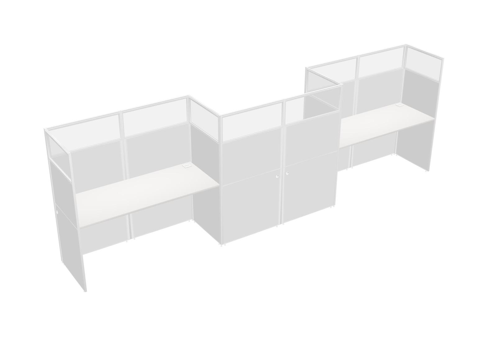 White Rectangular Cubicle Workstations For 3 - Zigzag Formation