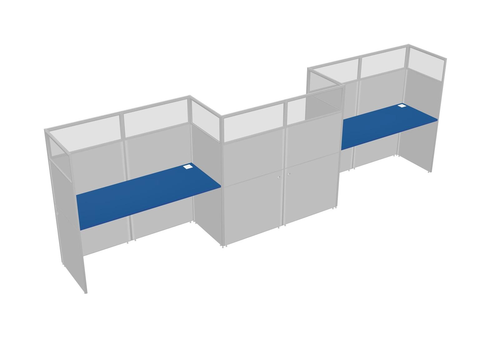 Prism Blue Rectangular Cubicle Workstations For 3 - Zigzag Formation