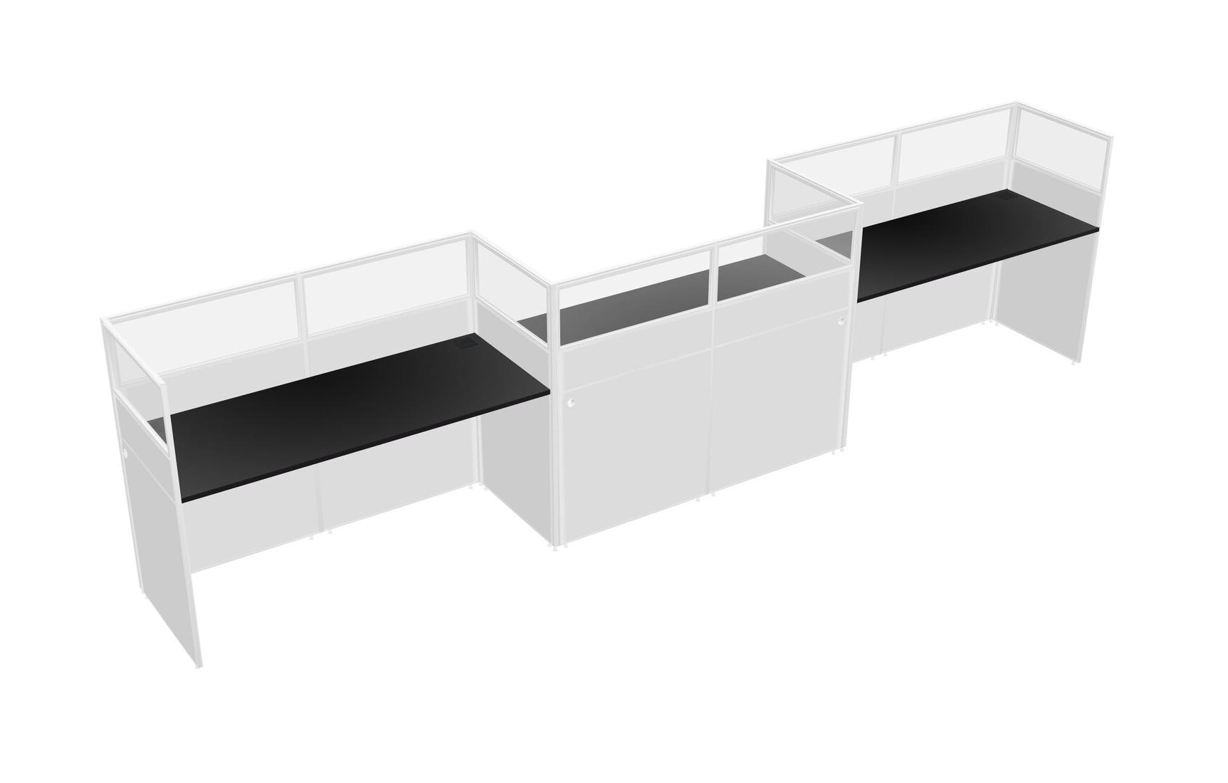 Black Rectangular Cubicle Workstations For 3 - Zigzag Formation