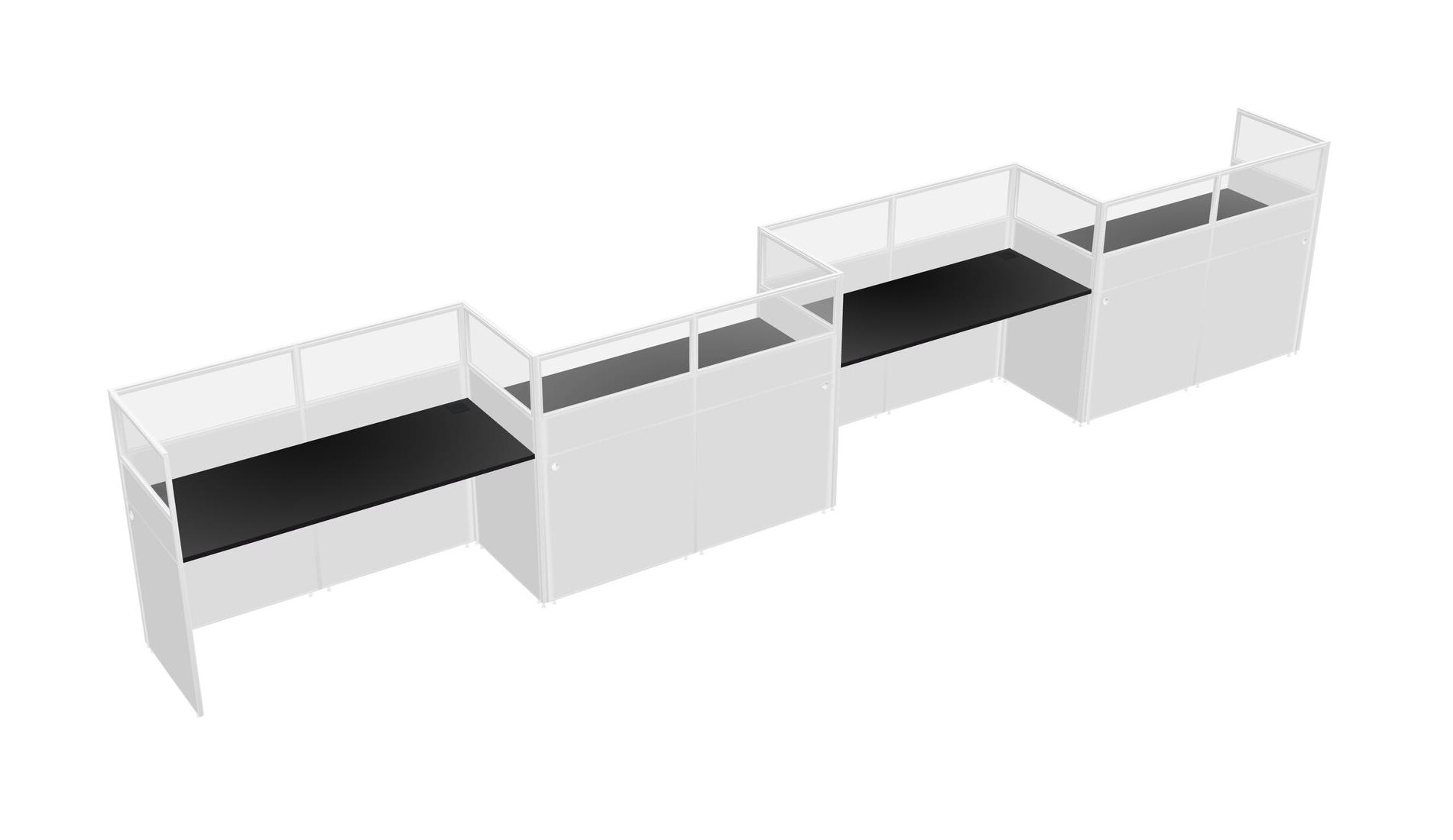 Black Rectangular Cubicle Workstations For 4 - Zigzag Formation