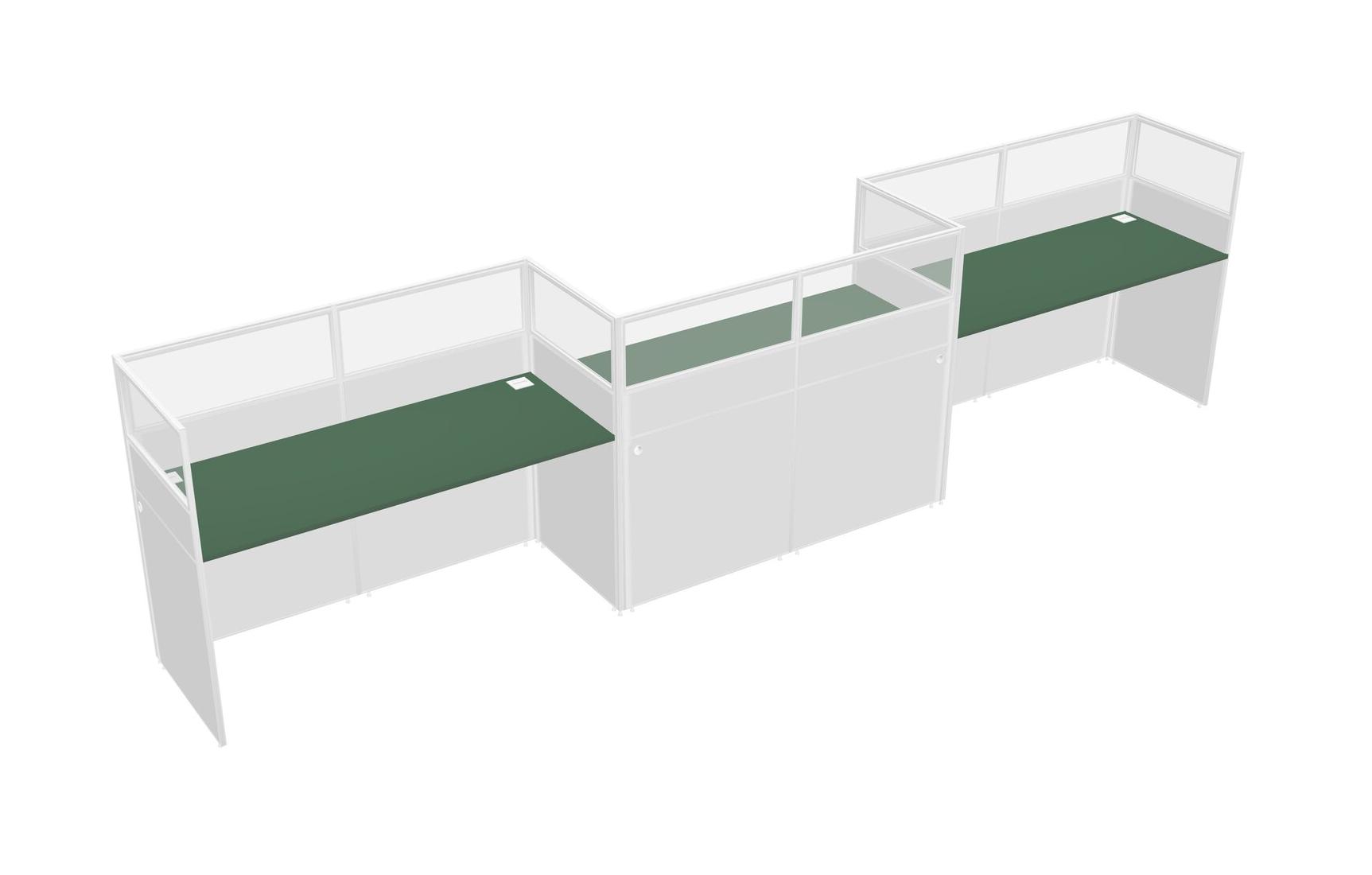 Green Rectangular Cubicle Workstations For 3 - Zigzag Formation