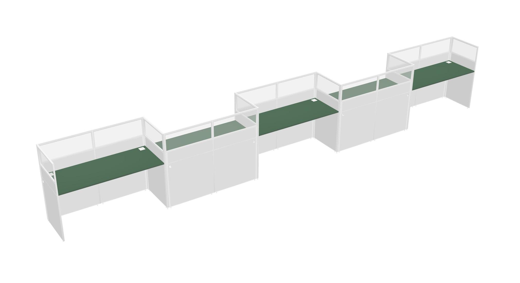 Green Rectangular Cubicle Workstations For 5 - Zigzag Formation