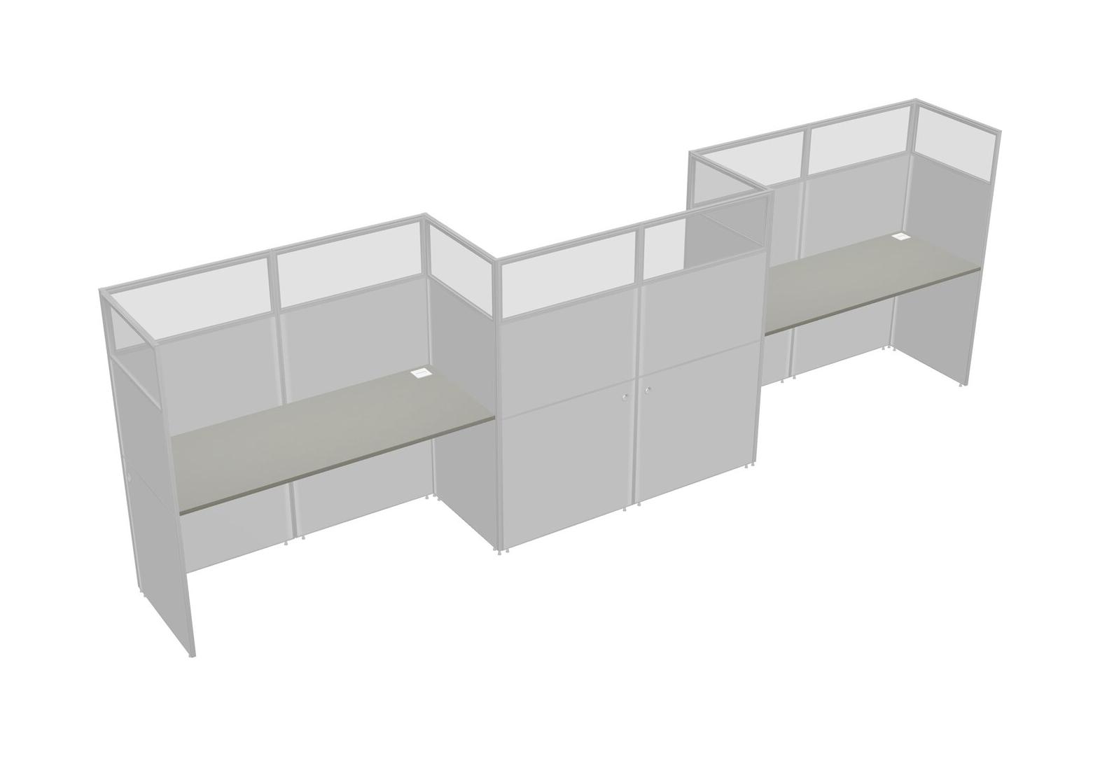 Grey Shadows Rectangular Cubicle Workstations For 3 - Zigzag Formation