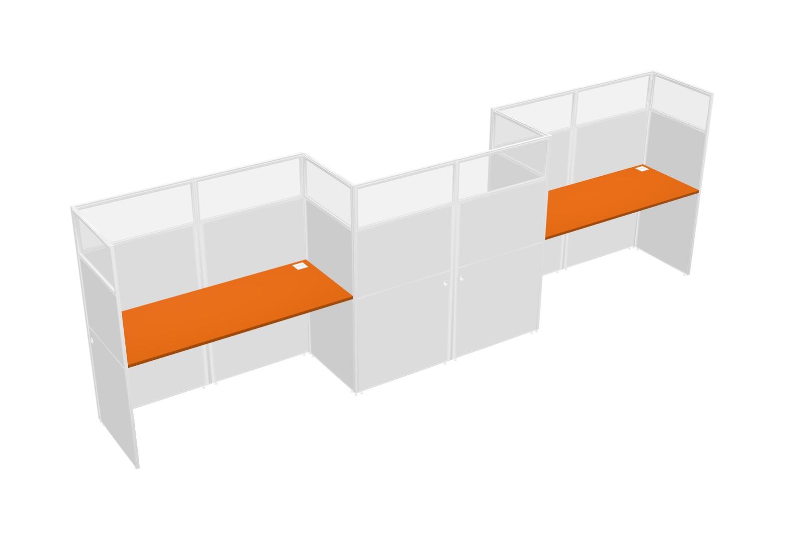 Orange Rectangular Cubicle Workstations For 3 - Zigzag Formation