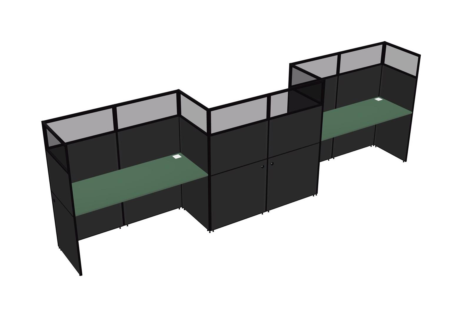 Green Rectangular Cubicle Workstations For 3 - Zigzag Formation