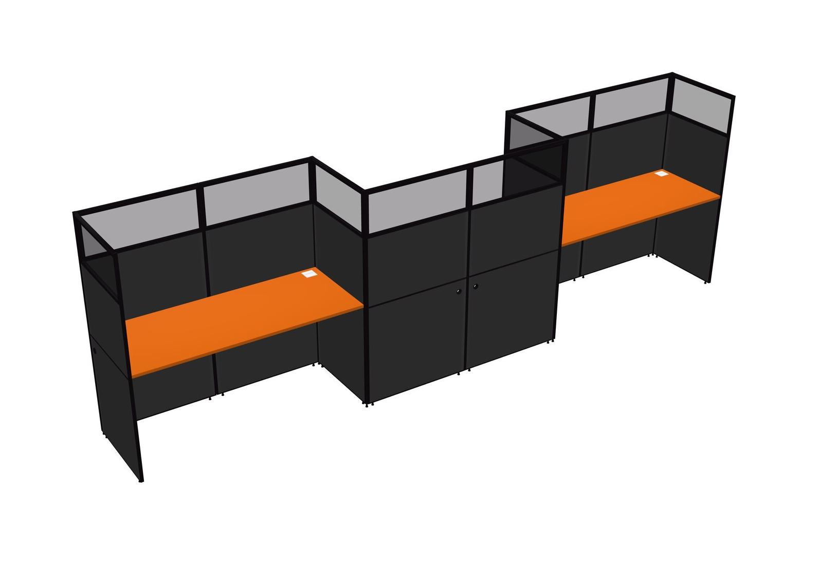Orange Rectangular Cubicle Workstations For 3 - Zigzag Formation