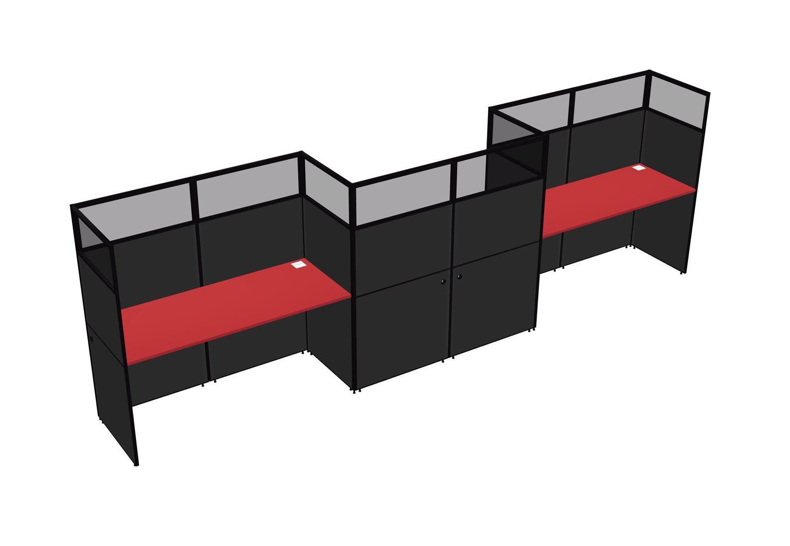 Prism Red Rectangular Cubicle Workstations For 3 - Zigzag Formation
