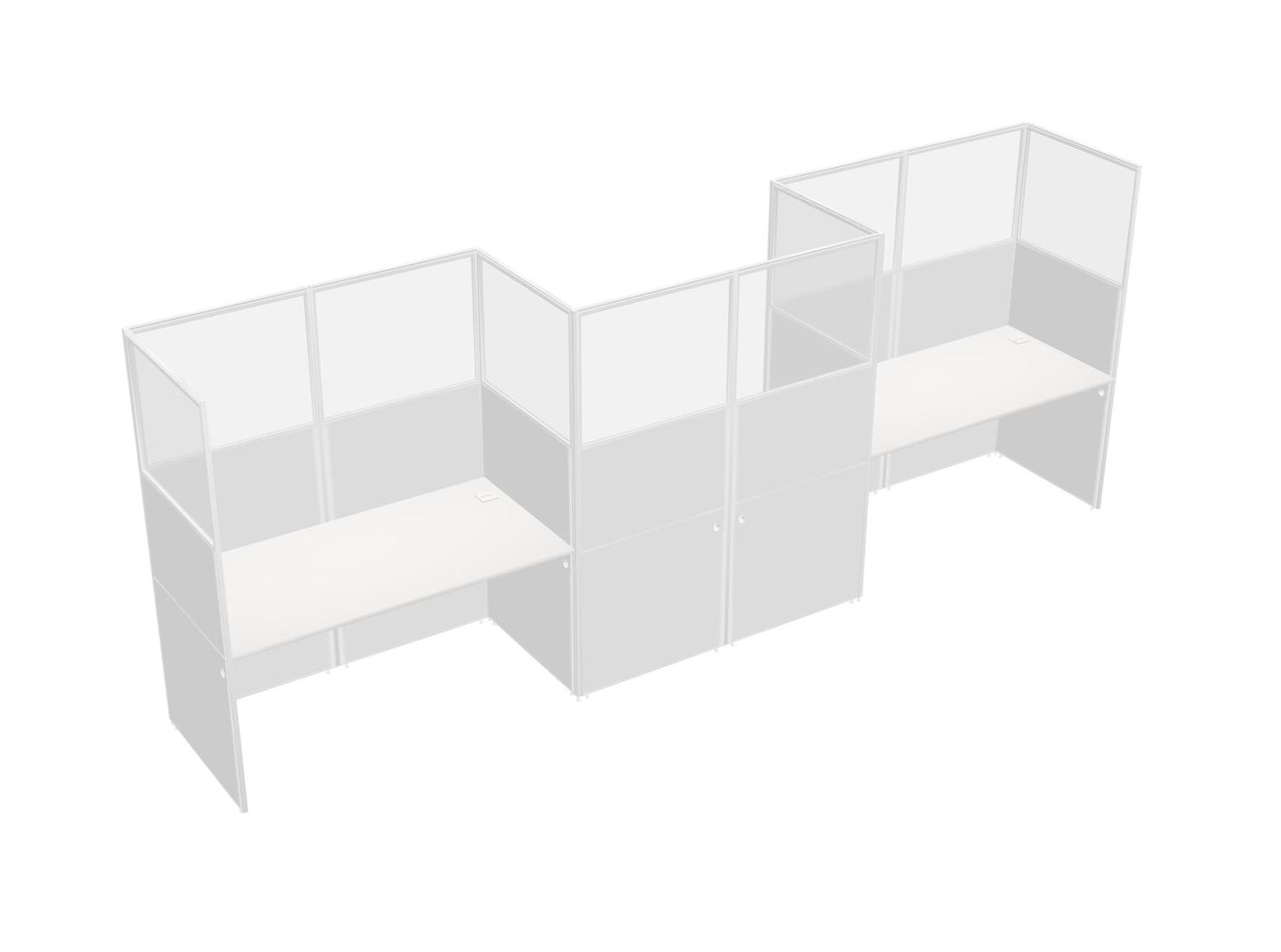 White Rectangular Cubicle Workstations For 3 - Zigzag Formation
