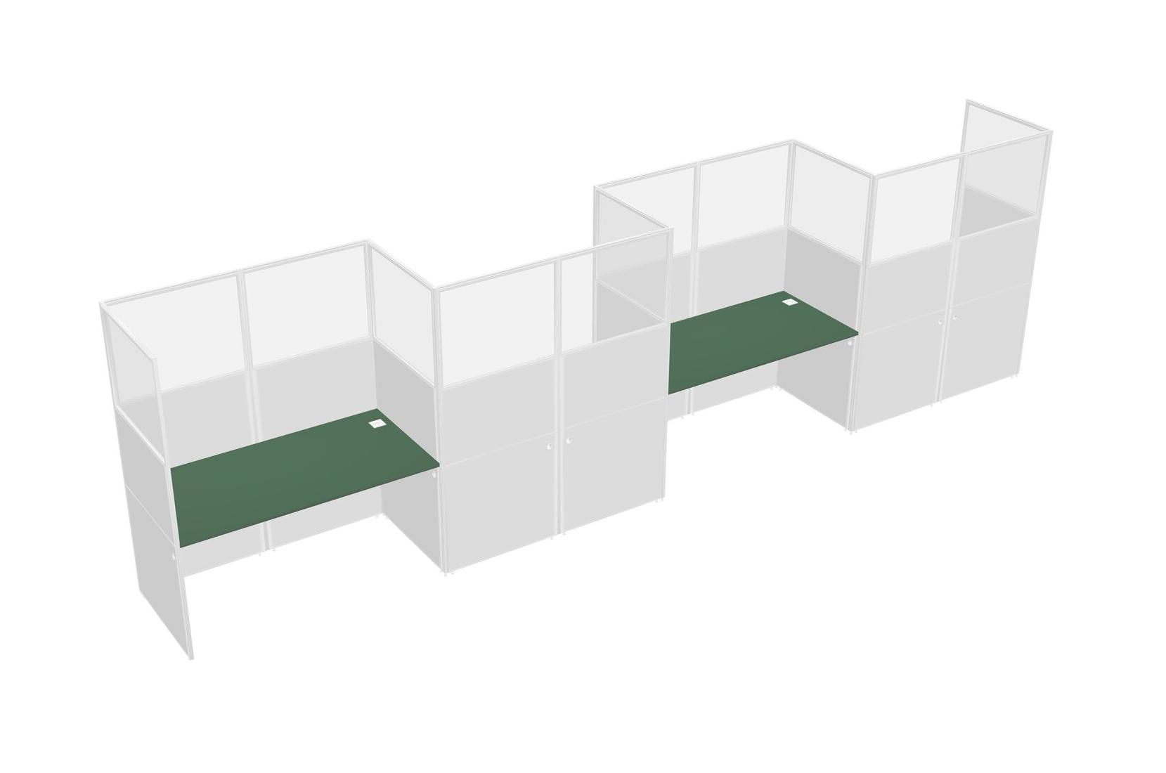 Green Rectangular Cubicle Workstations For 4 - Zigzag Formation