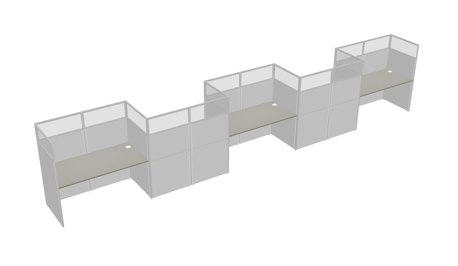 Grey Shadows Rectangular Cubicle Workstations For 5 - Zigzag Formation
