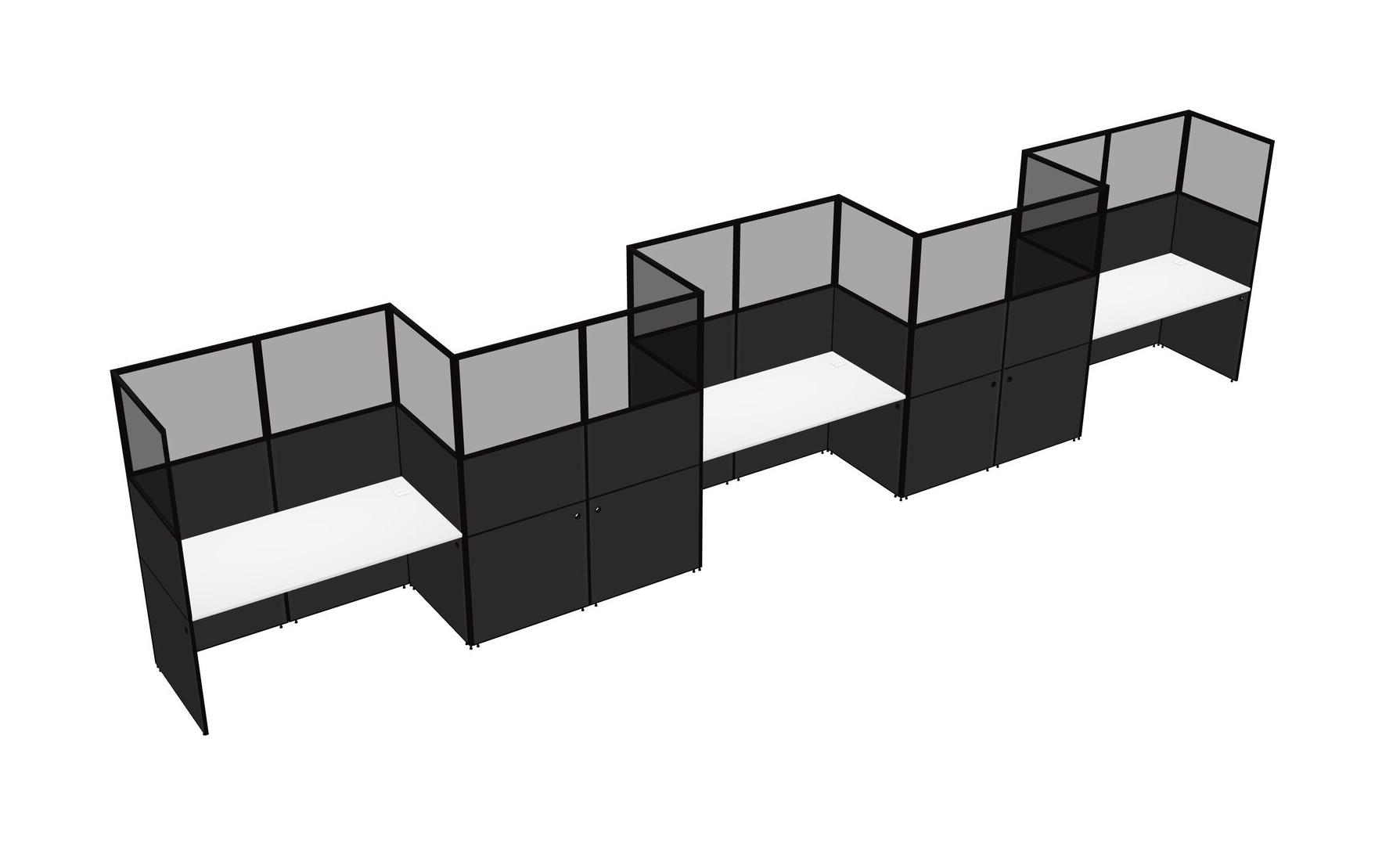 White Rectangular Cubicle Workstations For 5 - Zigzag Formation
