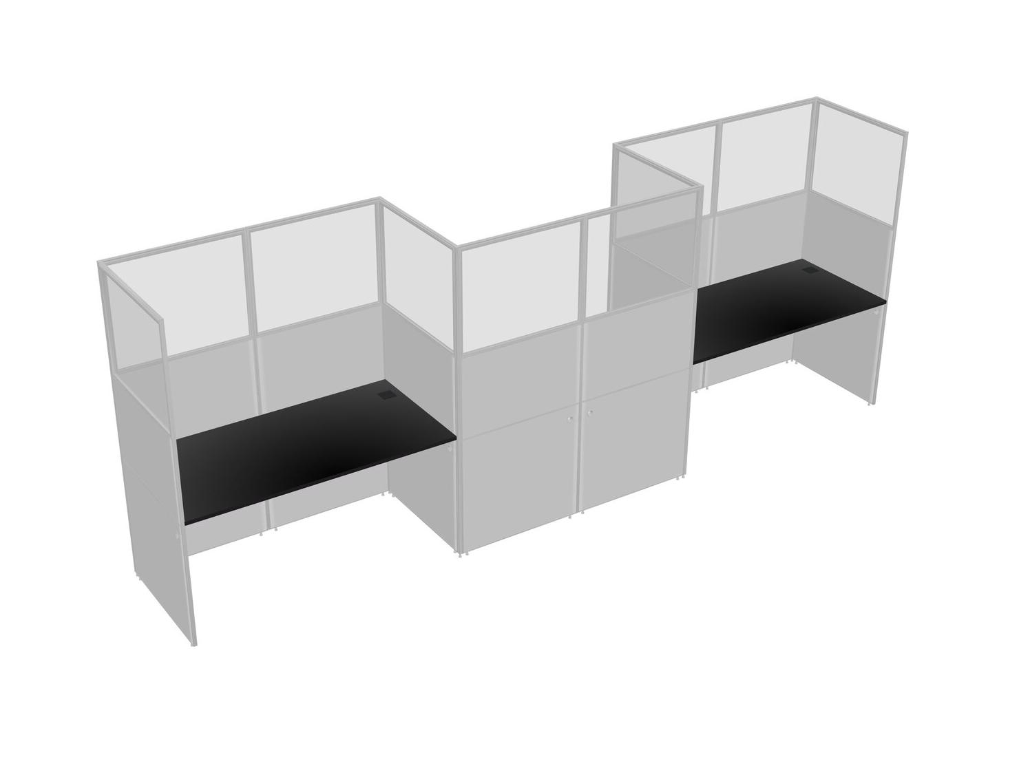 Black Rectangular Cubicle Workstations For 3 - Zigzag Formation