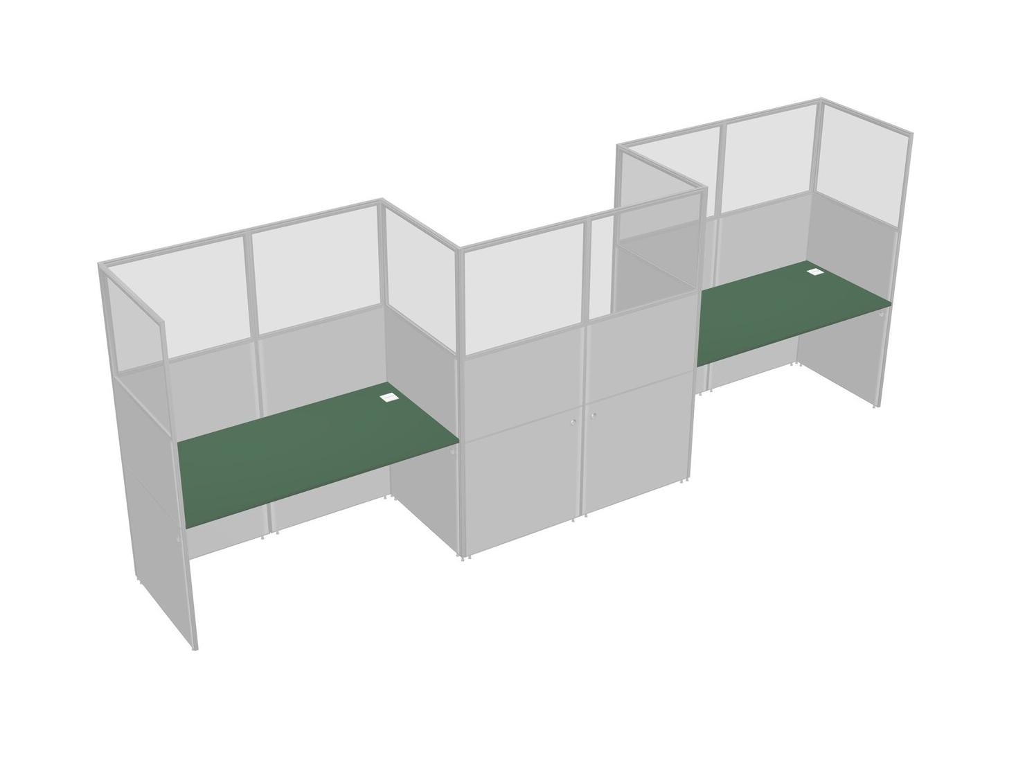 Green Rectangular Cubicle Workstations For 3 - Zigzag Formation