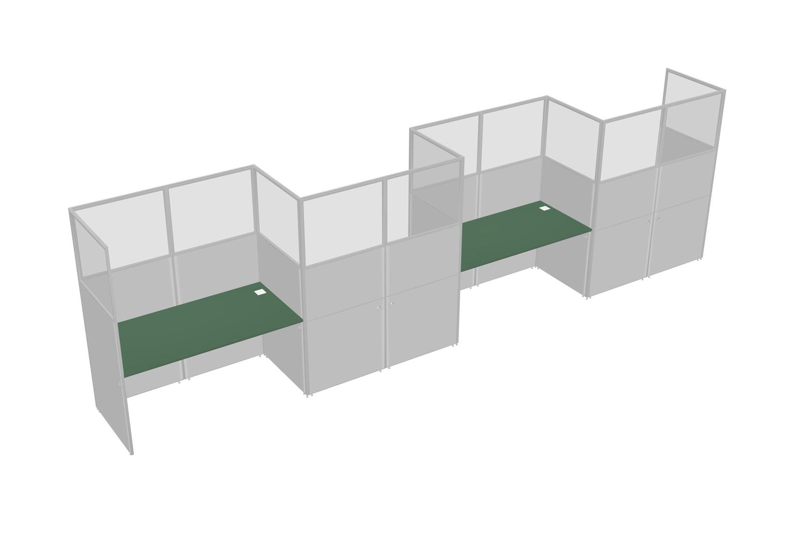 Green Rectangular Cubicle Workstations For 4 - Zigzag Formation