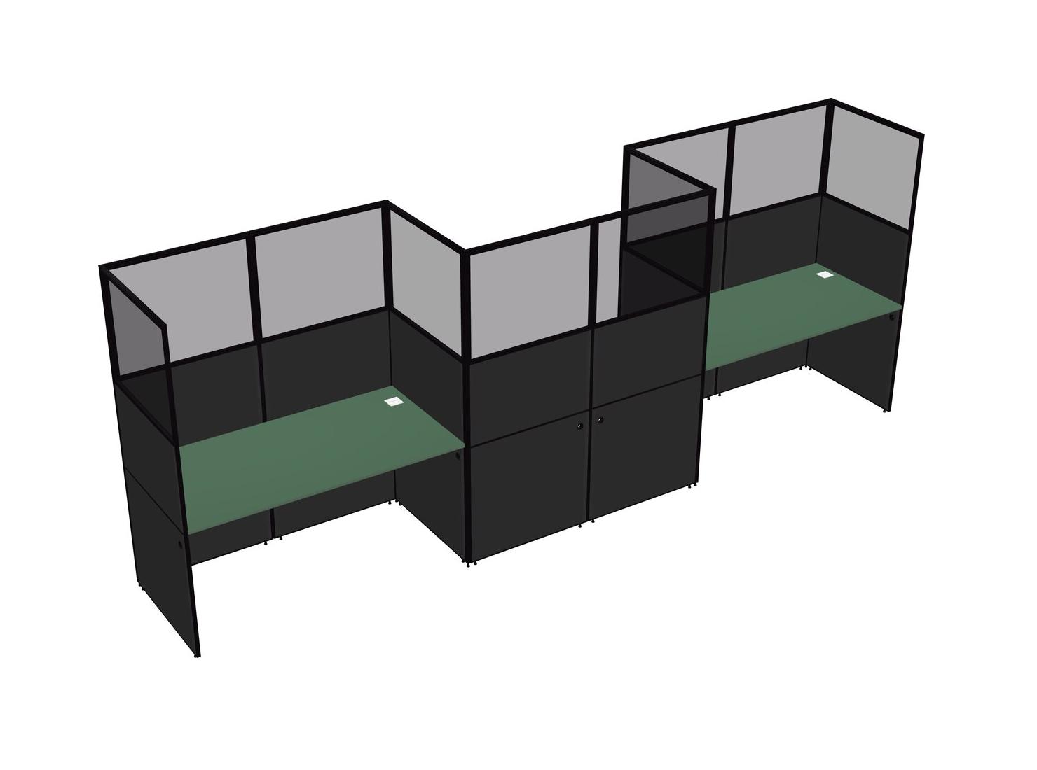 Green Rectangular Cubicle Workstations For 3 - Zigzag Formation