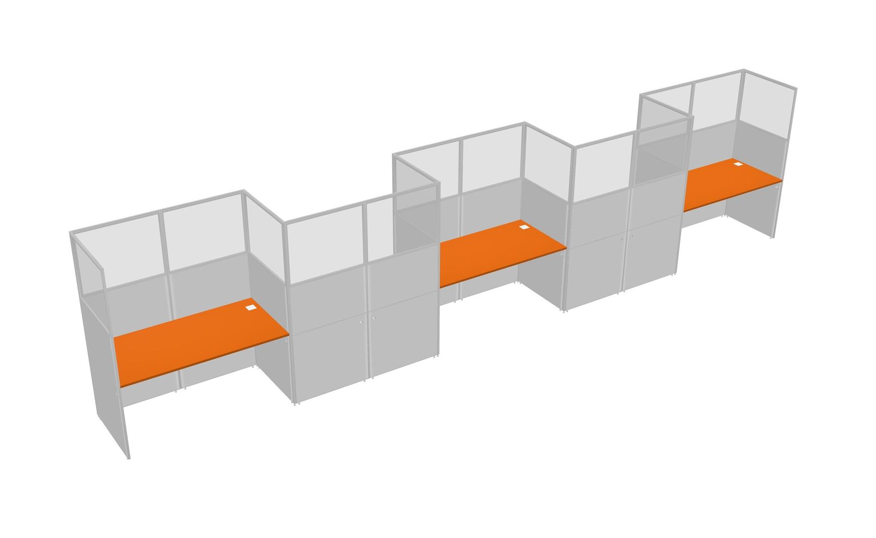 Orange Rectangular Cubicle Workstations For 5 - Zigzag Formation