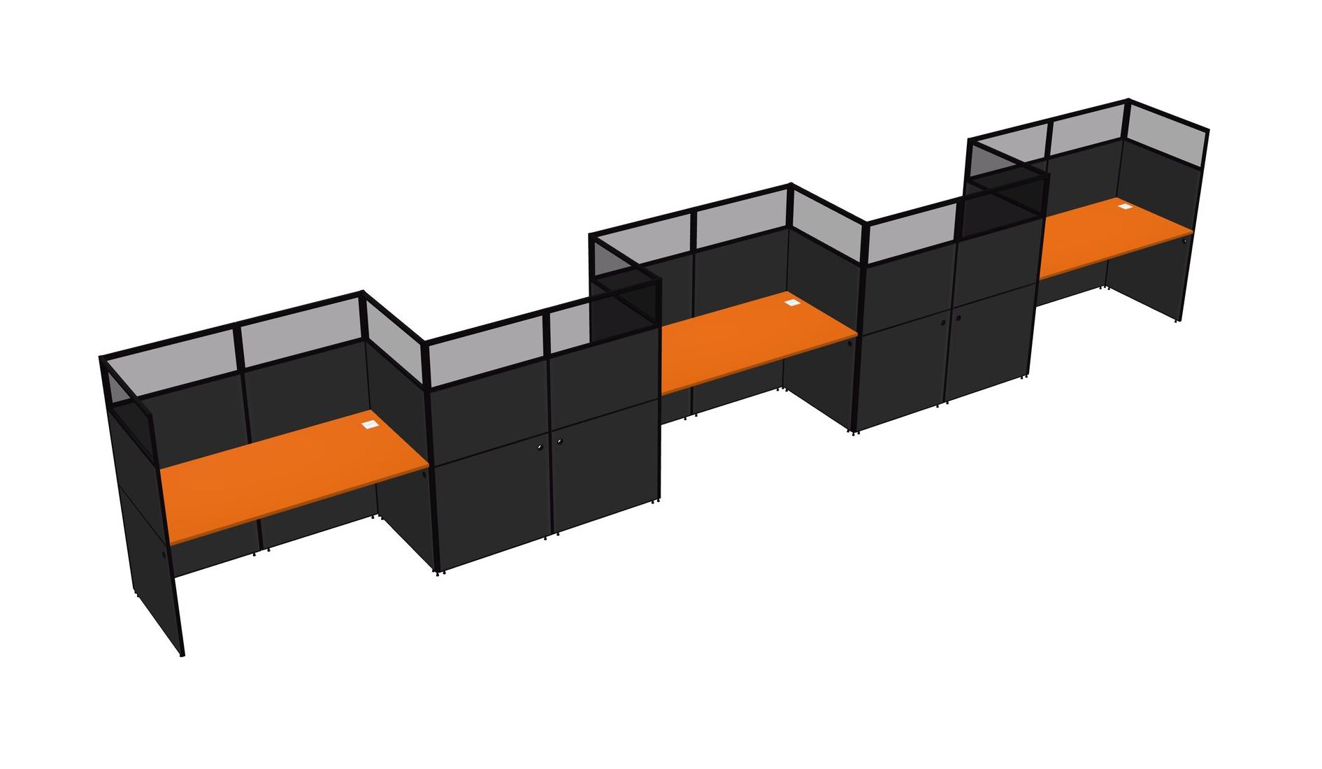 Orange Rectangular Cubicle Workstations For 5 - Zigzag Formation