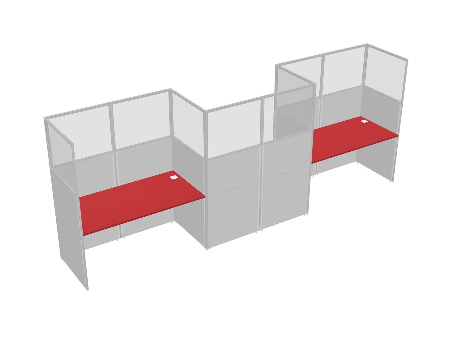 Prism Red Rectangular Cubicle Workstations For 3 - Zigzag Formation