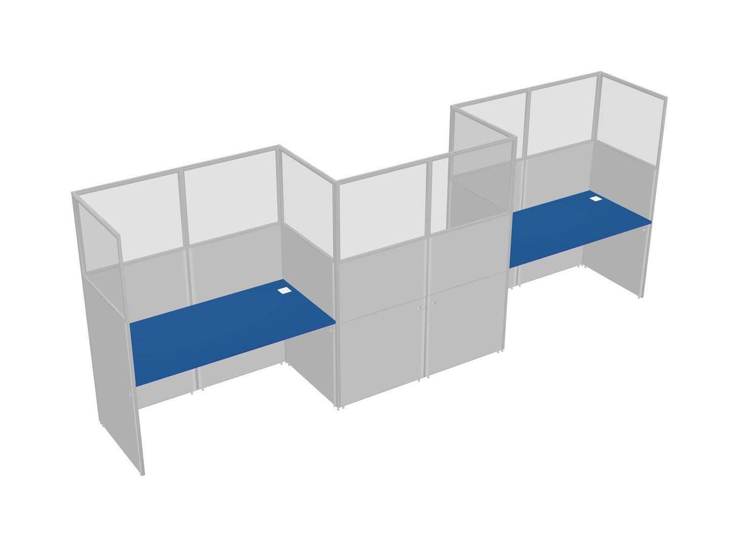 Prism Blue Rectangular Cubicle Workstations For 3 - Zigzag Formation