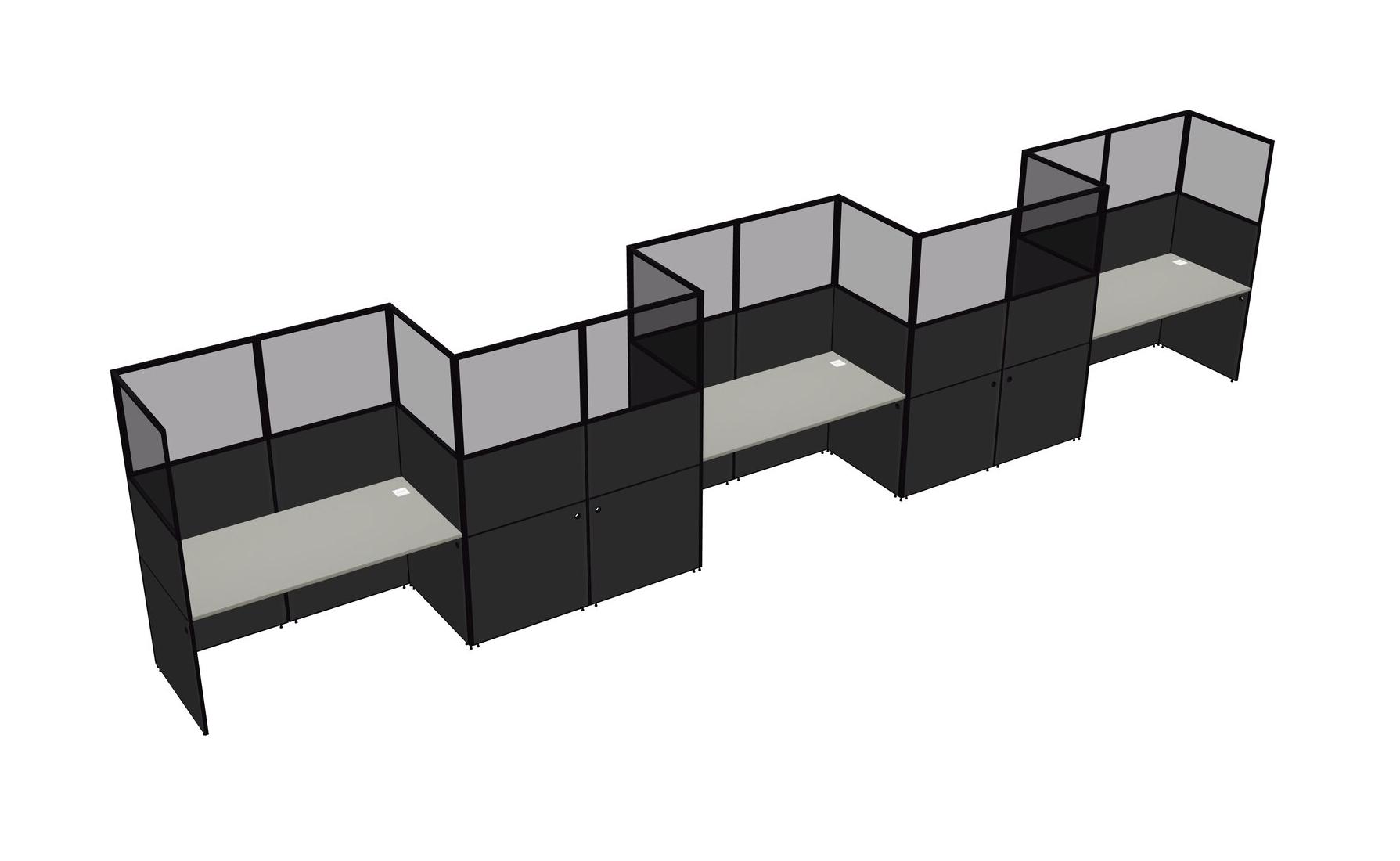 Grey Shadows Rectangular Cubicle Workstations For 5 - Zigzag Formation