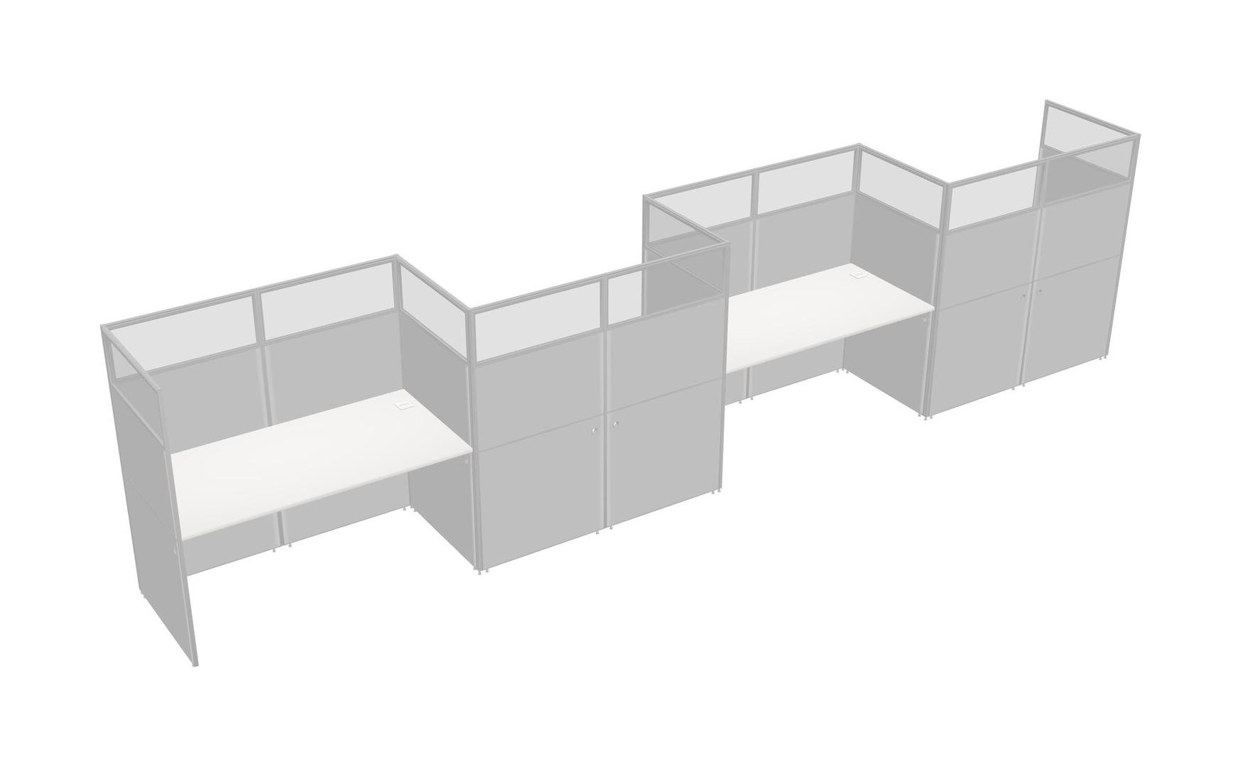 White Rectangular Cubicle Workstations For 4 - Zigzag Formation