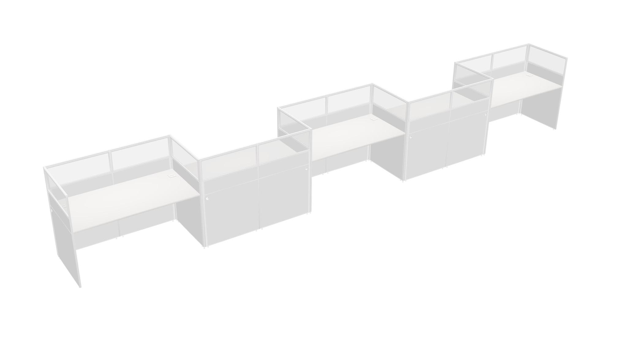 White Rectangular Cubicle Workstations For 5 - Zigzag Formation