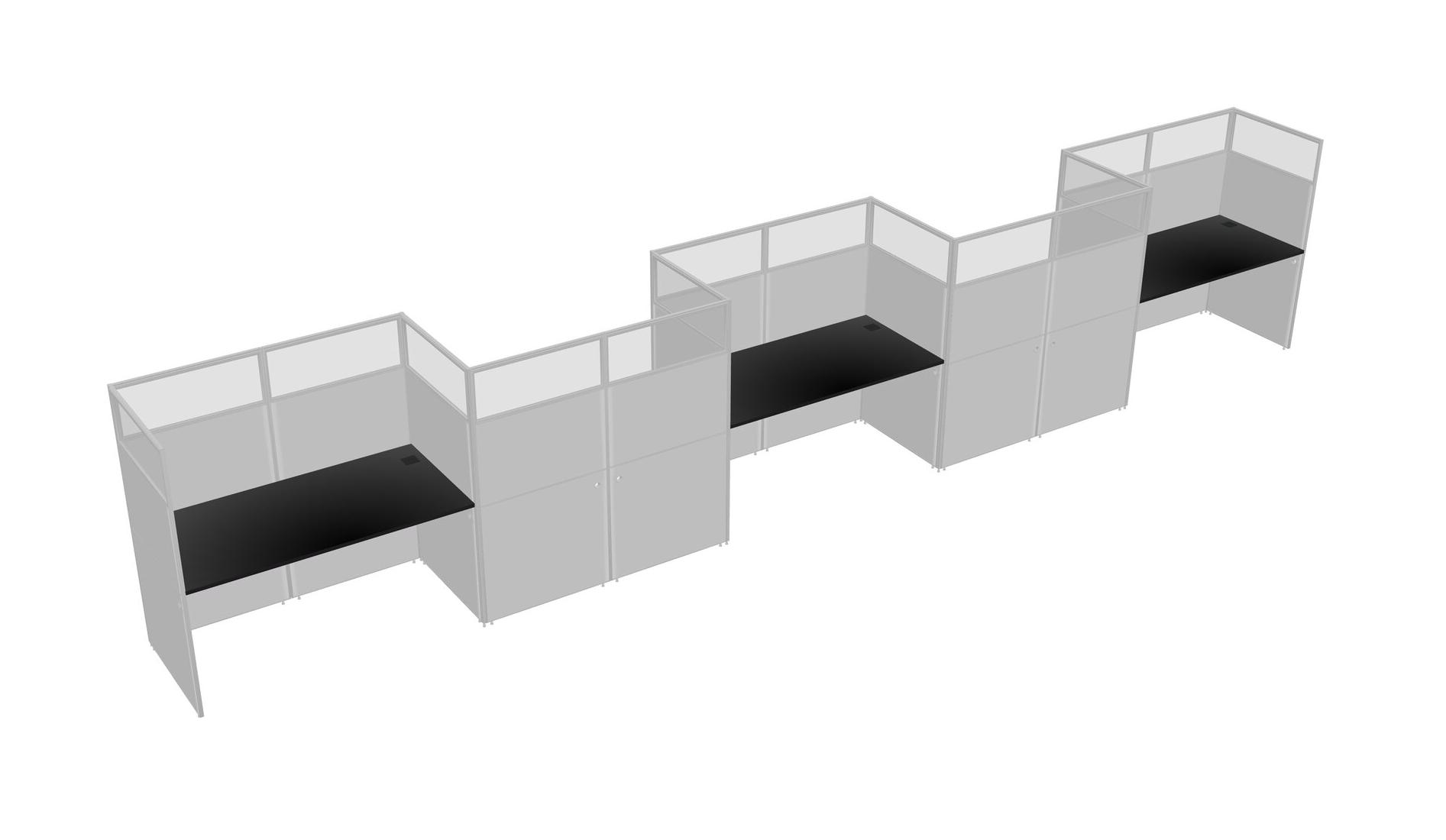 Black Rectangular Cubicle Workstations For 5 - Zigzag Formation